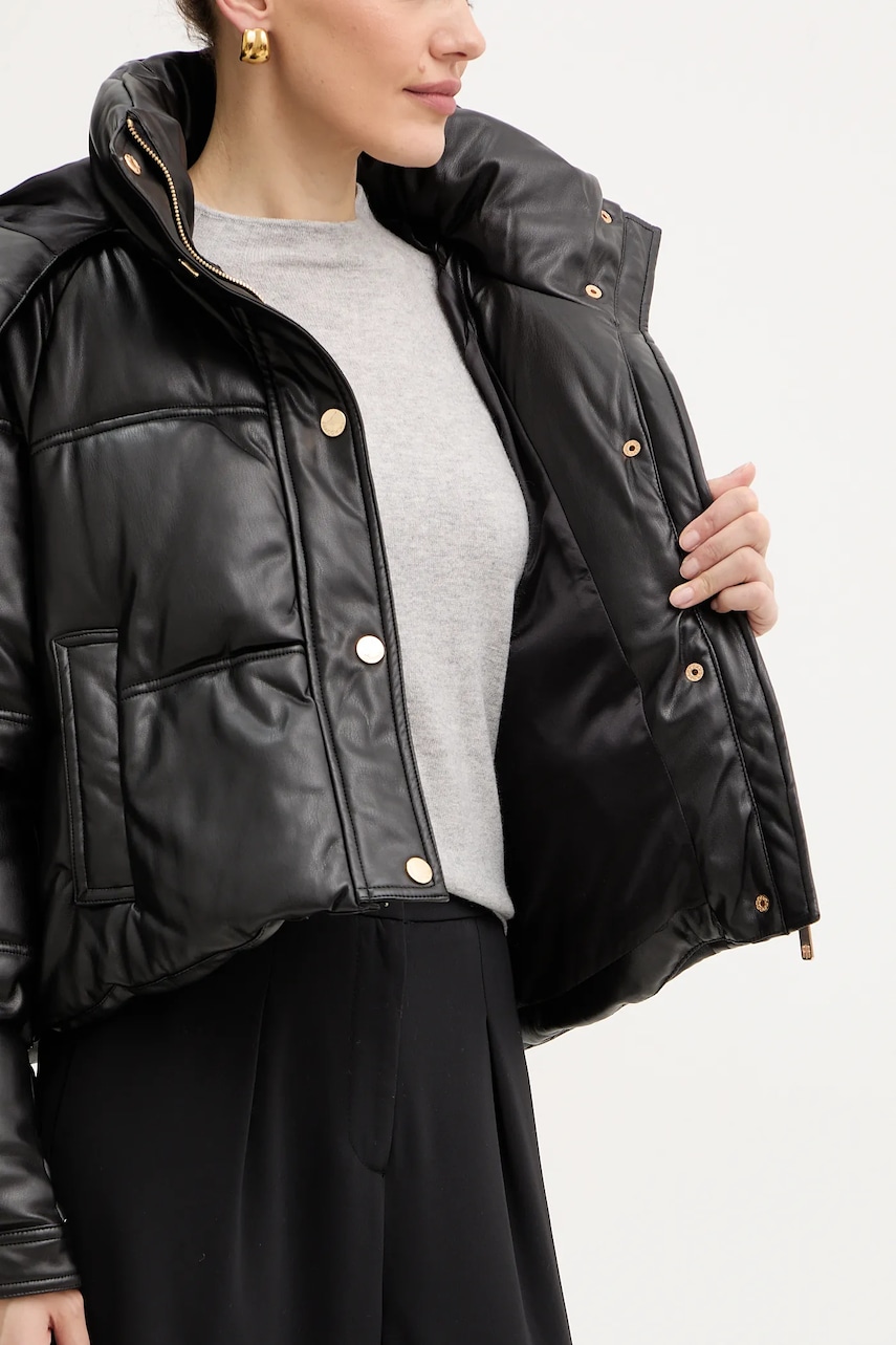 - Krótkie zapięcie na suwak i zatrzaski. - Model na podszewce. - Odpinany kaptur z troczkami. - Rękawy zapinane na zatrzaski. - Podwyższony kołnierz. - Pikowany model ocieplony syntetycznym wypełnieniem. - Długość: 54 cm. - Długość rękawa: 64 cm. - Szerokość pod pachami: 58 cm. - Wymiary podane dla rozmiaru: S.