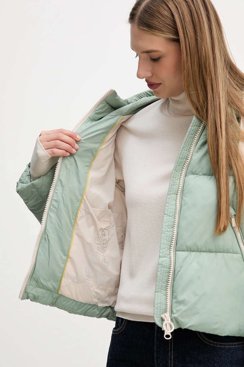 - Produkty ze linii #geoxsustanibility wyprodukowane zostały zgodnie z zasadami etyki pracy oraz zrównoważonych procesów produkcyjnych, zmniejszając tym samym ich wpływ na środowisko. - Geox Respira - umieszczone przy kołnierzu włókna 3D, skonstruowane tak, aby stworzyć przestrzeń pomiędzy materiałem a ciałem. Pozwala to na swobodny przepływ powietrza z jednoczesnym zachowaniem właściwości ogrzewających. - Technologia Geox Respira dzięki specjalnej oddychającej i nieprzemakalnej membranie pozwala na przedostanie się wilgoci na zewnątrz i zapewnia wodoodporność. - Wodoodporność oznacza podwyższoną odporność na działanie wody. Produkt w kontakcie z wodą zachowuje swoje właściwości, co pozwala na większy komfort użytkowania dzięki niższemu progowi przemakalności, nie gwarantuje jednak całkowitej wodoszczelności. - Indeks izolacji termicznej (wskazuje stopień odporności termicznej wyściółki wewnątrz odzieży wierzchniej Geox): MEDIUM. - Zapewnia komfort termiczny do: 10 °C. - Prosty, nie blokujący ruchów fason. - Podwyższony kołnierz gwarantuje dodatkową ochronę przed chłodem. - Kaptur regulowany za pomocą troczka, zwiększa ochronę przed wiatrem i deszczem. - U dołu rękawów otwory na kciuk, które osłaniają dłonie i zapobiegają podwijaniu się rękawów. - Rękawy wykończone elastyczną lamówką, dzięki której ubranie lepiej przylega do ciała i wygodnie się zakłada. - Dolna krawędź wykończona troczkami ze stoperami, które dzięki możliwości regulacji obwodu dołu, zwiększają izolację od zimna. - Zapięcie na całej długości na suwak wyposażony w wewnętrzną klapkę przeciwsztormową. - Dwie kieszenie boczne na ręce zapinane na zamek błyskawiczny. - Wnętrze kieszeni wyściełane polarem, który zwiększa ochronę przed zimnem. - Dodatkowa kieszeń wewnętrzna pozwala na bezpieczne przechowywanie drobiazgów. - Dopinane paski wewnątrz kurtki pozwalają na szybkie ściągnięcie i noszenie kurtki na plecach. - Długość rękawa: 66 cm. - Długość: 54 cm. - Szerokość pod pachami: 55 cm. - Szerokość w ramionach: 46 cm. - Wymiary podane dla rozmiaru: 38.