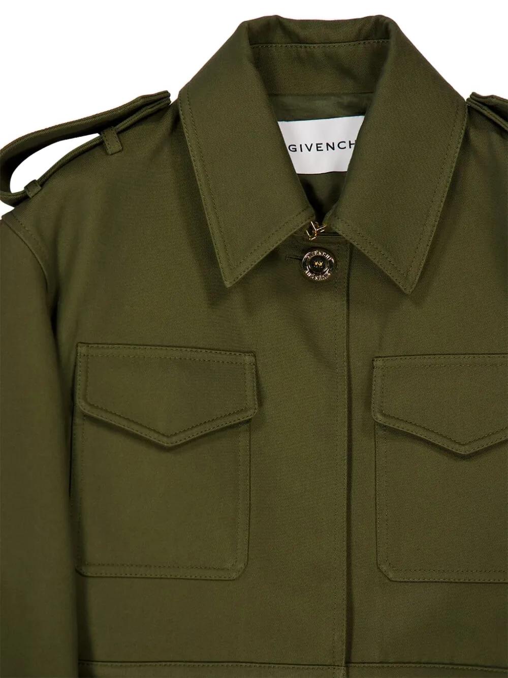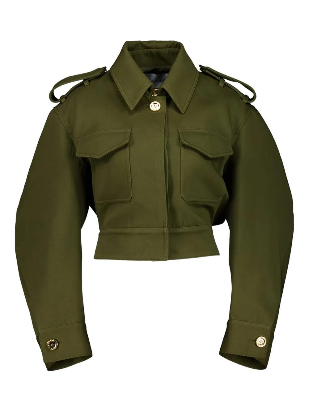 green cotton-wool blend flap patch-pockets button fastening epaulettes long sleeves