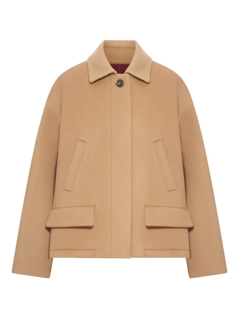 camel brown flap pockets button fastening classic collar long sleeves straight hem