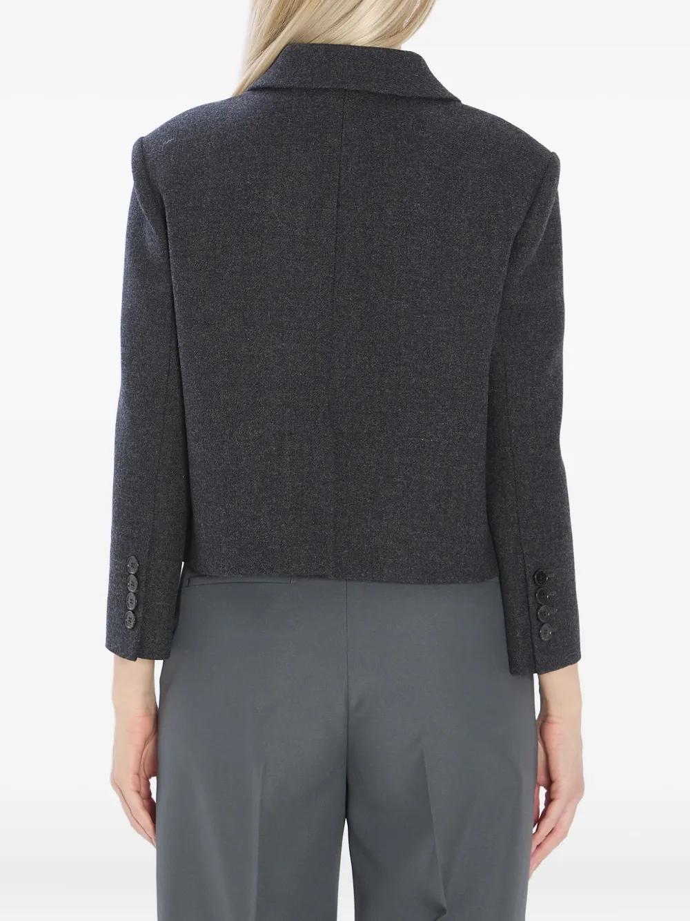 dark grey classic lapels single-breasted front closure patch pockets buttoned cuffs central back vent