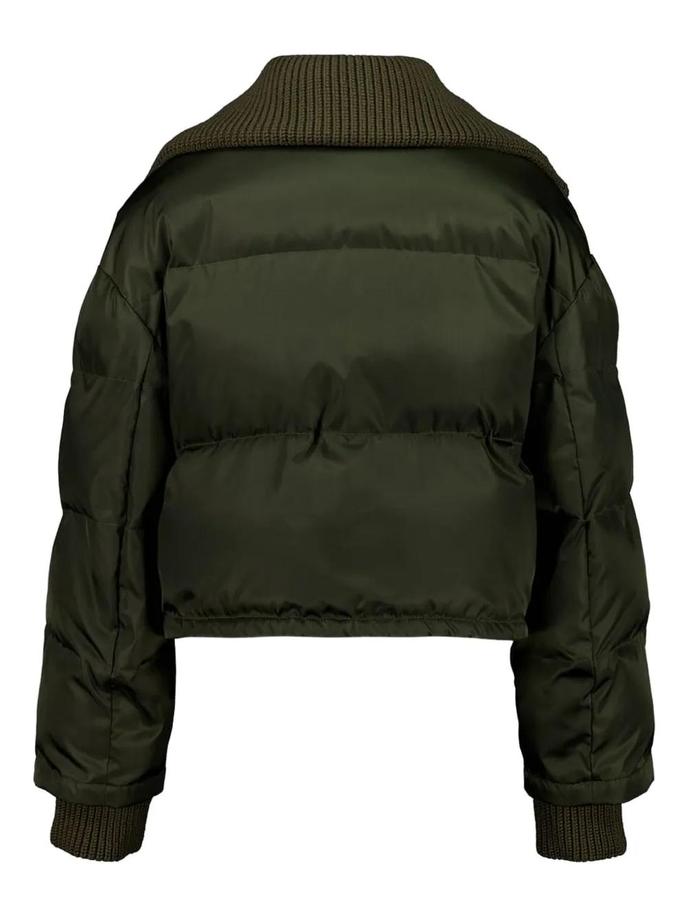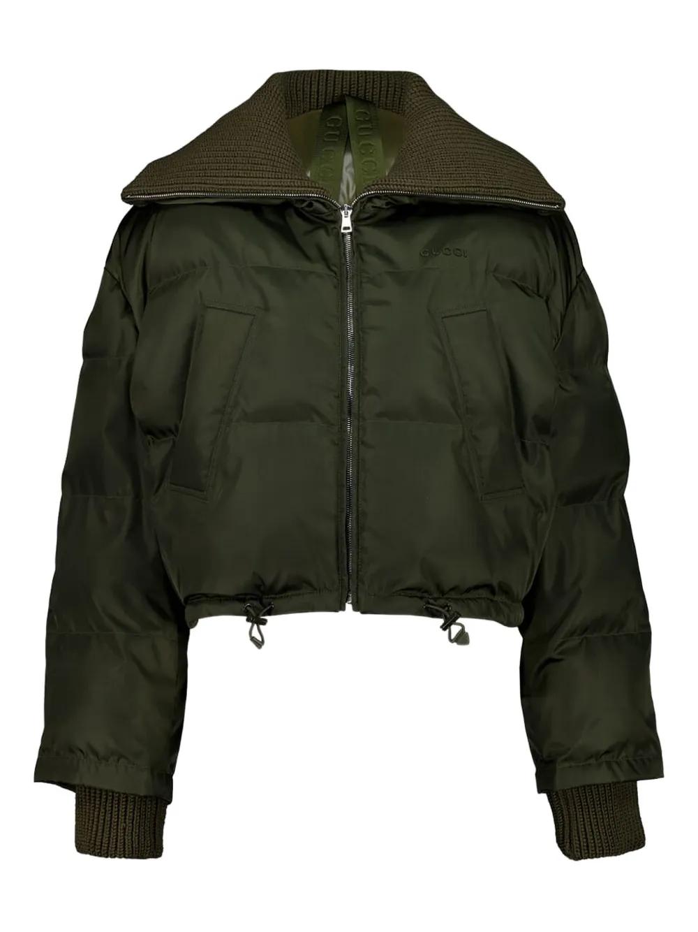 forest green ribbed detailing zip fastening logo detail drawstring hem padded design