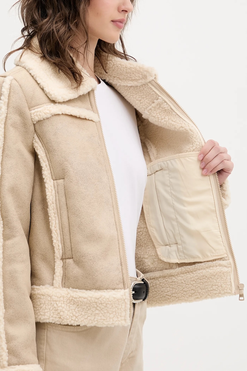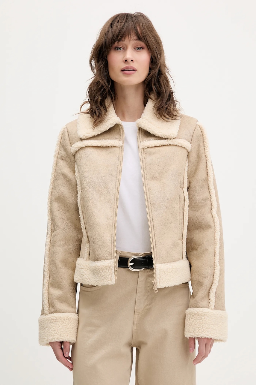 Guess Jeans kurtka kolor beżowy przejściowa W5BL13 W1862