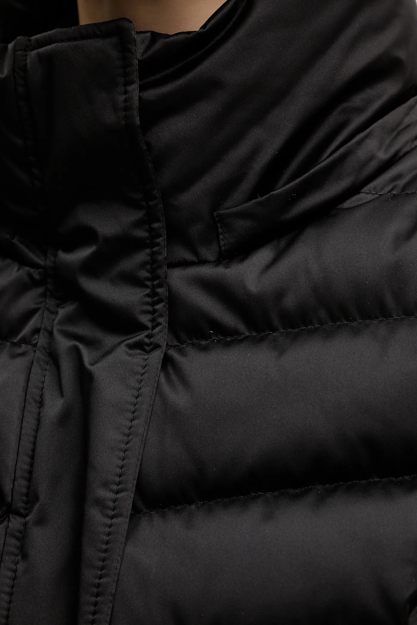 - Produkt posiada certyfikat RDS, co zapewnia odpowiedzialne pozyskiwanie materiałów. - Ocieplony model na podszewce. - Wypełnienie z naturalnego puchu i pierza. - Model wodoodporny i wiatroodporny. - Hydrofobowe wykończenie materiału powłoką DWR (Durable Water Repellency) zapewnia wodoodporność. Dzięki zastosowaniu tej metody woda skrapla się na powierzchni materiału i spływa po nim, nie wchłaniając się do wewnątrz. - Zapięcie na dwustronny suwak i zatrzaski. - Podwyższony kołnierz i odpinany kaptur gwarantują dodatkową ochronę przed chłodem. - Kaptur z odpinanym sztucznym futerkiem. - Dwie wsuwane i zapinane na zatrzask kieszenie boczne. - Rękawy wykończone wygodnym, elastycznym ściągaczem. - W talii pasek, który modeluje sylwetkę i dodatkowo podkreśla talię. - Długość rękawa: 61 cm. - Szerokość pod pachami: 49 cm. - Szerokość w ramionach: 40 cm. - Długość: 111 cm.