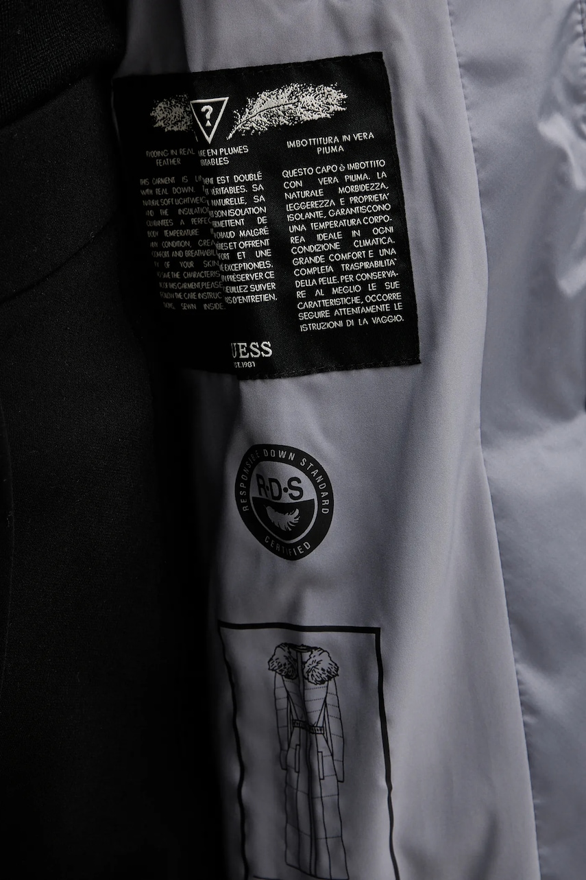 - Produkt posiada certyfikat RDS, co zapewnia odpowiedzialne pozyskiwanie materiałów. - Ocieplony model na podszewce. - Wypełnienie z naturalnego puchu i pierza. - Model wodoodporny i wiatroodporny. - Hydrofobowe wykończenie materiału powłoką DWR (Durable Water Repellency) zapewnia wodoodporność. Dzięki zastosowaniu tej metody woda skrapla się na powierzchni materiału i spływa po nim, nie wchłaniając się do wewnątrz. - Zapięcie na dwustronny suwak i zatrzaski. - Podwyższony kołnierz i odpinany kaptur gwarantują dodatkową ochronę przed chłodem. - Kaptur z odpinanym sztucznym futerkiem. - Dwie wsuwane i zapinane na zatrzask kieszenie boczne. - Rękawy wykończone wygodnym, elastycznym ściągaczem. - W talii pasek, który modeluje sylwetkę i dodatkowo podkreśla talię. - Długość rękawa: 61 cm. - Szerokość pod pachami: 49 cm. - Szerokość w ramionach: 40 cm. - Długość: 111 cm.