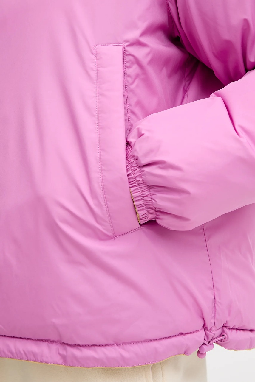 - Hydrofobowe wykończenie materiału, które nie zawiera perfluorowych substancji chemicznych (PFC), jest nietoksyczne, ekologiczne i zapewnia wodoodporność. - Wodoodporność oznacza podwyższoną odporność na działanie wody. Produkt w kontakcie z wodą zachowuje swoje właściwości, co pozwala na większy komfort użytkowania dzięki niższemu progowi przemakalności, nie gwarantuje jednak całkowitej wodoszczelności. - Model dwustronny. - Luźny krój zapewniający pełną swobodę ruchów. - Krój rękawa z obniżoną linią ramion nie ogranicza mobilności. - Rękawy wykończone ściągaczem. - Posiada zapięcie na suwak i podwyższony kołnierz. - Dwie wsuwane i zapinane na zatrzask kieszenie boczne. - Dolna krawędź wykończona troczkami ze stoperami. - Długość rękawa(mierzona od kołnierza): 73 cm. - Długość: 61 cm. - Szerokość pod pachami: 55 cm. - Wymiary podane dla rozmiaru: S.