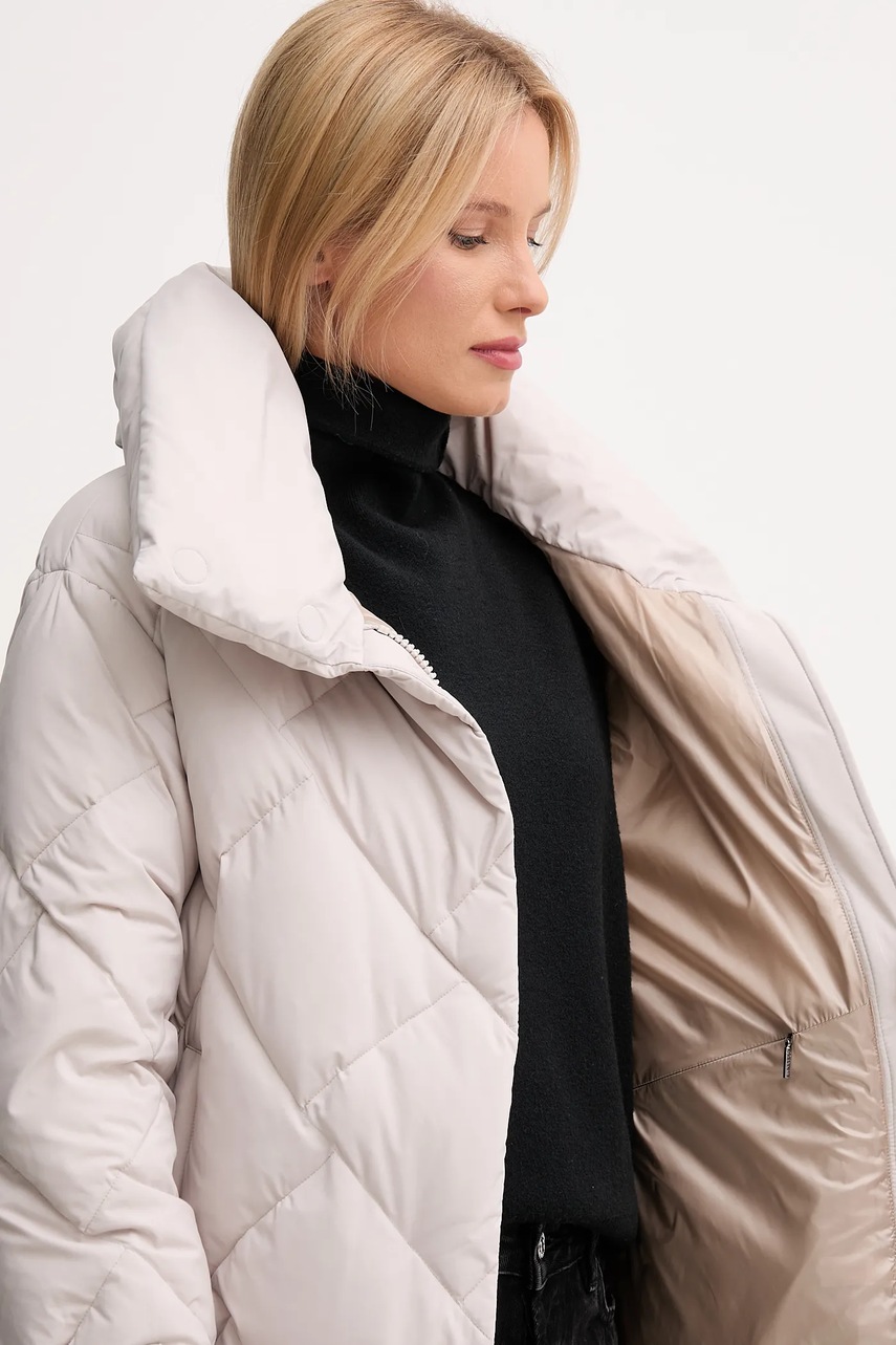 - Prosty, nie blokujący ruchów fason. - Hydrofobowe wykończenie materiału wierzchniego nie pozwala dostać się wilgoci do wewnątrz, dzięki czemu dobrze chroni przed niekorzystnymi warunkami atmosferycznymi. - Wodoodporność oznacza podwyższoną odporność na działanie wody. Produkt w kontakcie z wodą zachowuje swoje właściwości, co pozwala na większy komfort użytkowania dzięki niższemu progowi przemakalności, nie gwarantuje jednak całkowitej wodoszczelności. - Dołączony pasek. - Dwie wsuwane i zapinane na suwak kieszenie boczne. - Rękawy z regulacją na zatrzaski. - Dolna krawędź wykończona troczkami ze stoperami, które dzięki możliwości regulacji obwodu dołu, zwiększają izolację od zimna. - Ocieplony model na podszewce. - Wypełnienie z naturalnego puchu i pierza. - Zapięcie na całej długości na suwak wyposażony w wewnętrzną i zewnętrzną klapkę przeciwsztormową. - Podwyższony kołnierz gwarantuje dodatkową ochronę przed chłodem. - Długość rękawa: 54 cm. - Długość: 70 cm. - Szerokość pod pachami: 53 cm. - Wymiary podane dla rozmiaru: 36.