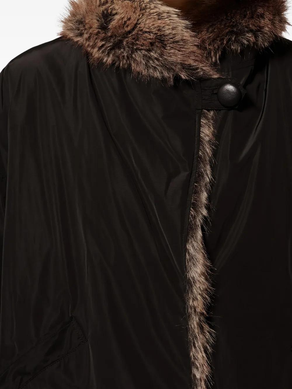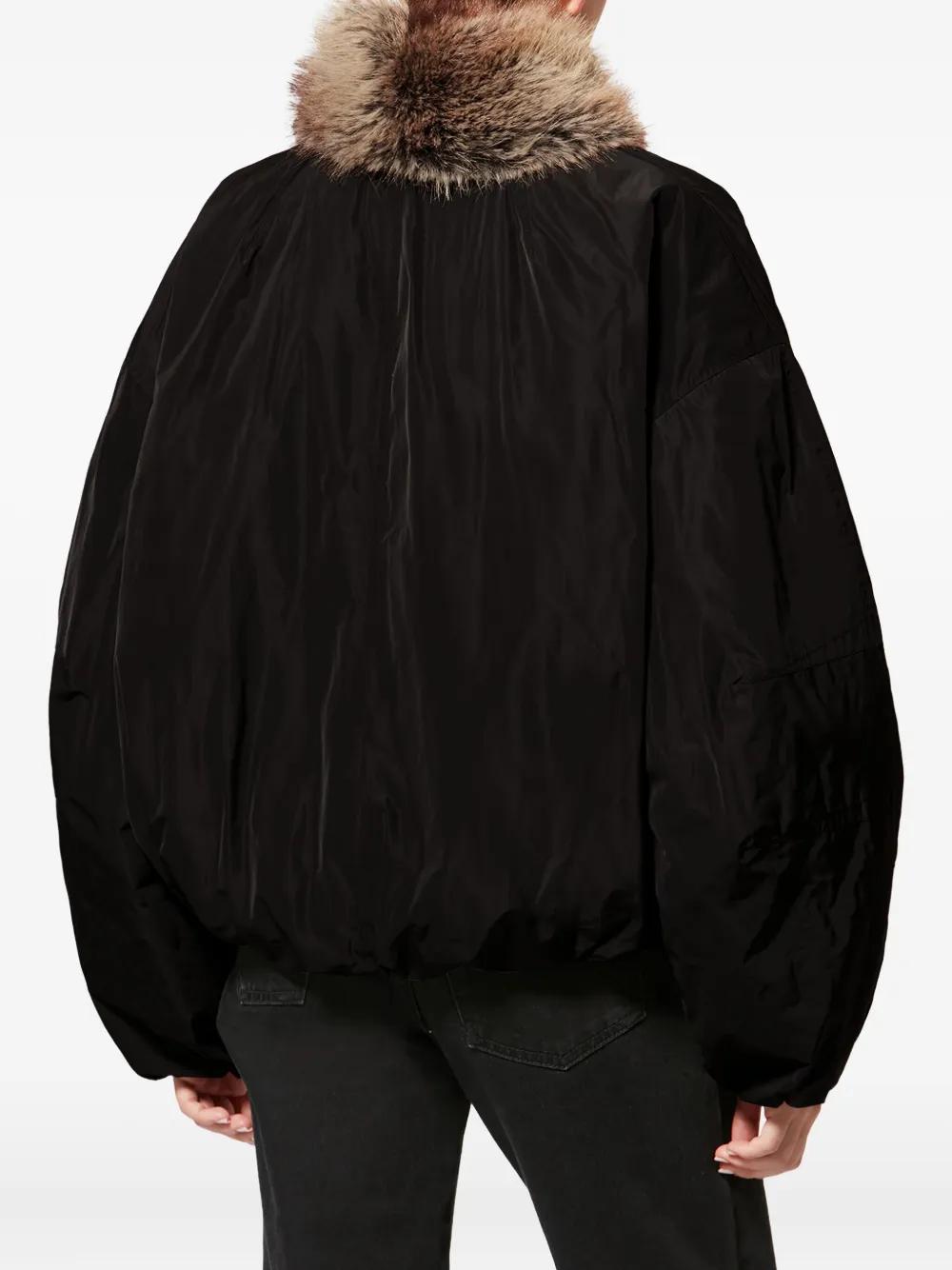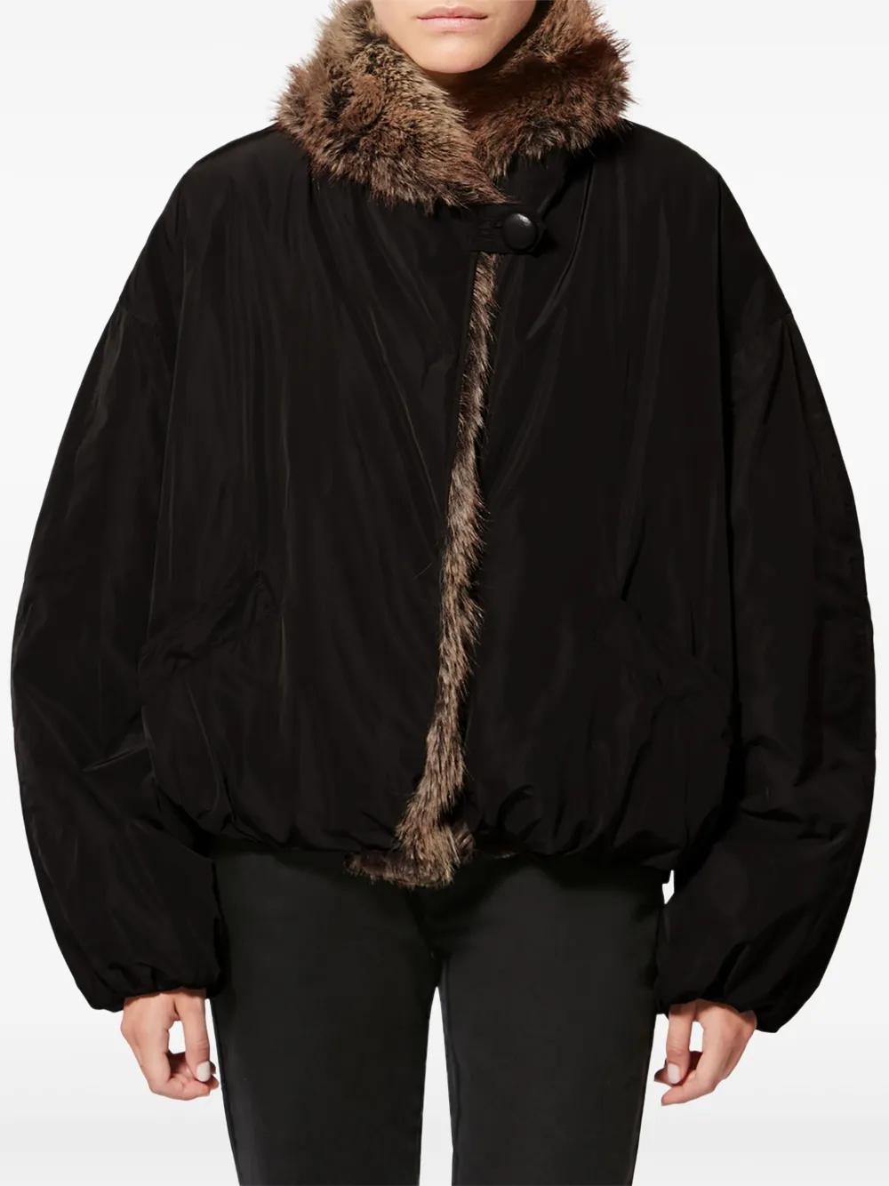 - Fason oversize. - Długi rękaw. - Obniżona linia ramion. - Model z kołnierzykiem z imitacji futra. - Zapięcie na suwak. - Wsuwane kieszenie. - Wykończenie ze ściągacza. - Lekko ocieplony model na podszewce. - Pikowany model. - Długość rękawa(mierzona od kołnierzyka): 79 cm. - Długość: 65,5 cm. - Szerokość w biuście: 64 cm. - Wymiary podane dla rozmiaru: S.
