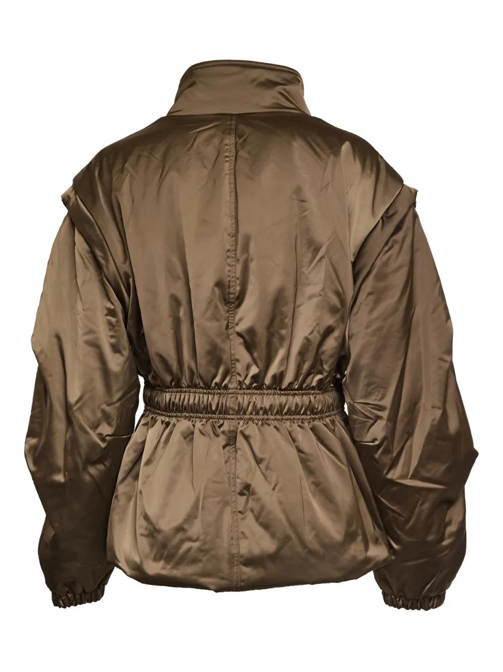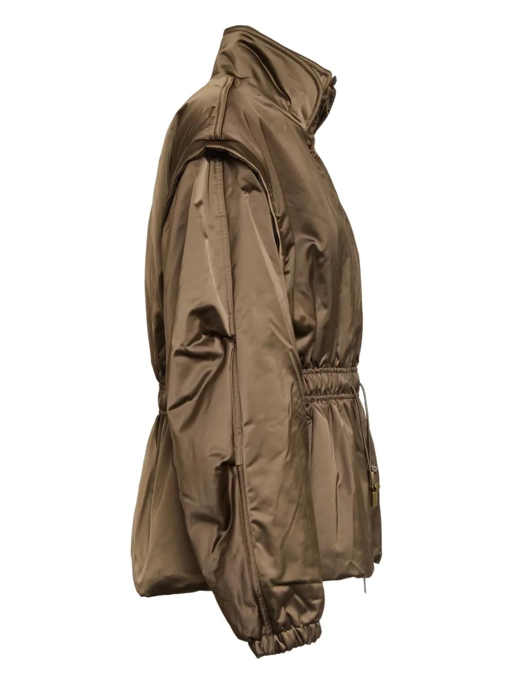 khaki elasticated waistband zip fastening high neck long sleeves elasticated cuffs