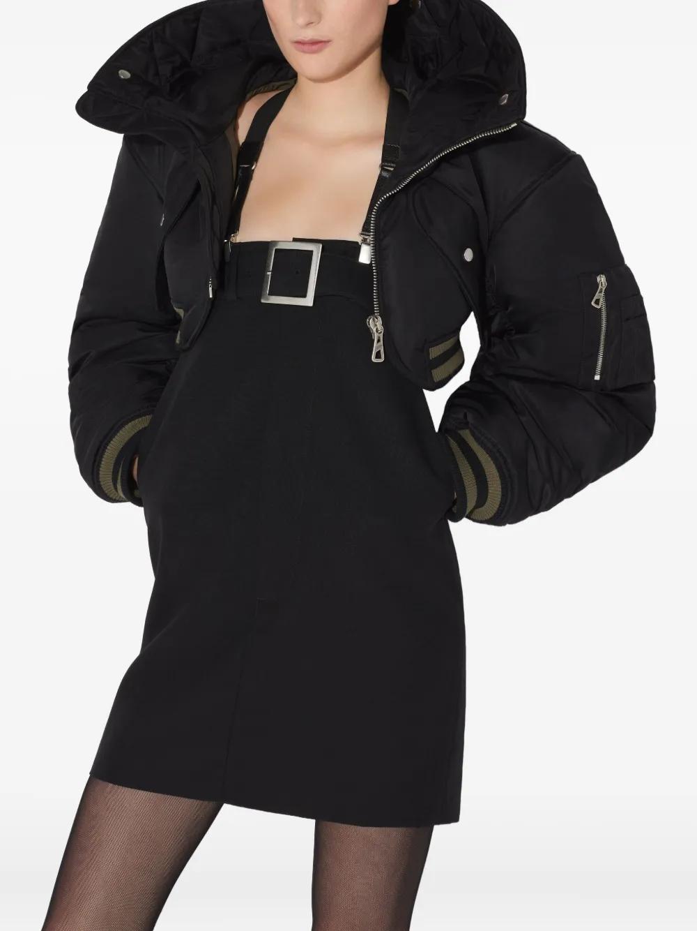 black front zip fastening padded design sleeve zip pocket long sleeves