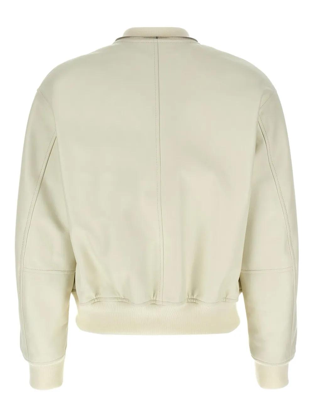 white front two-way zip fastening two front welt pockets ribbed cuffs and hem