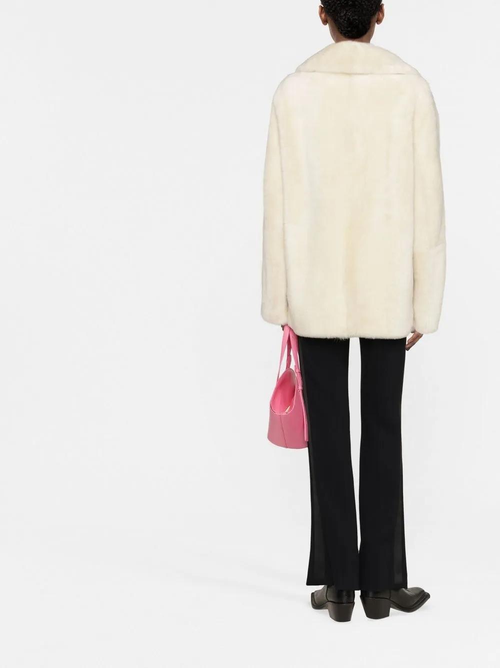 light beige sheepskin lamb fur reversible spread collar front button fastening long sleeves straight hem