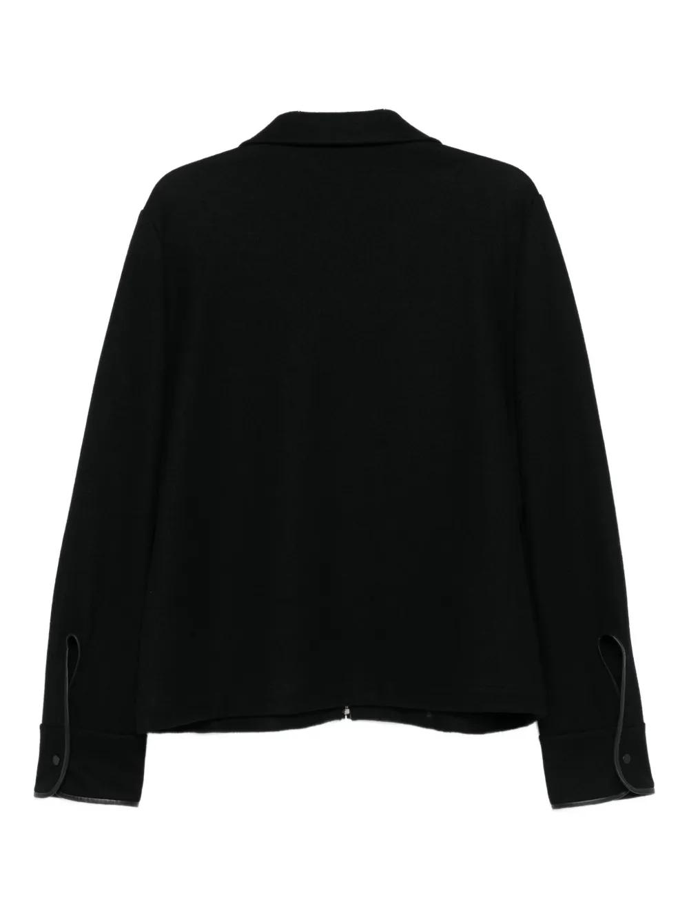 black wool zip fastening long sleeves buttoned cuffs classic collar