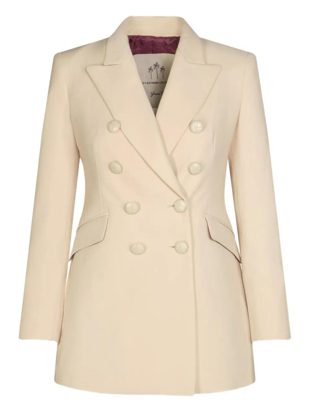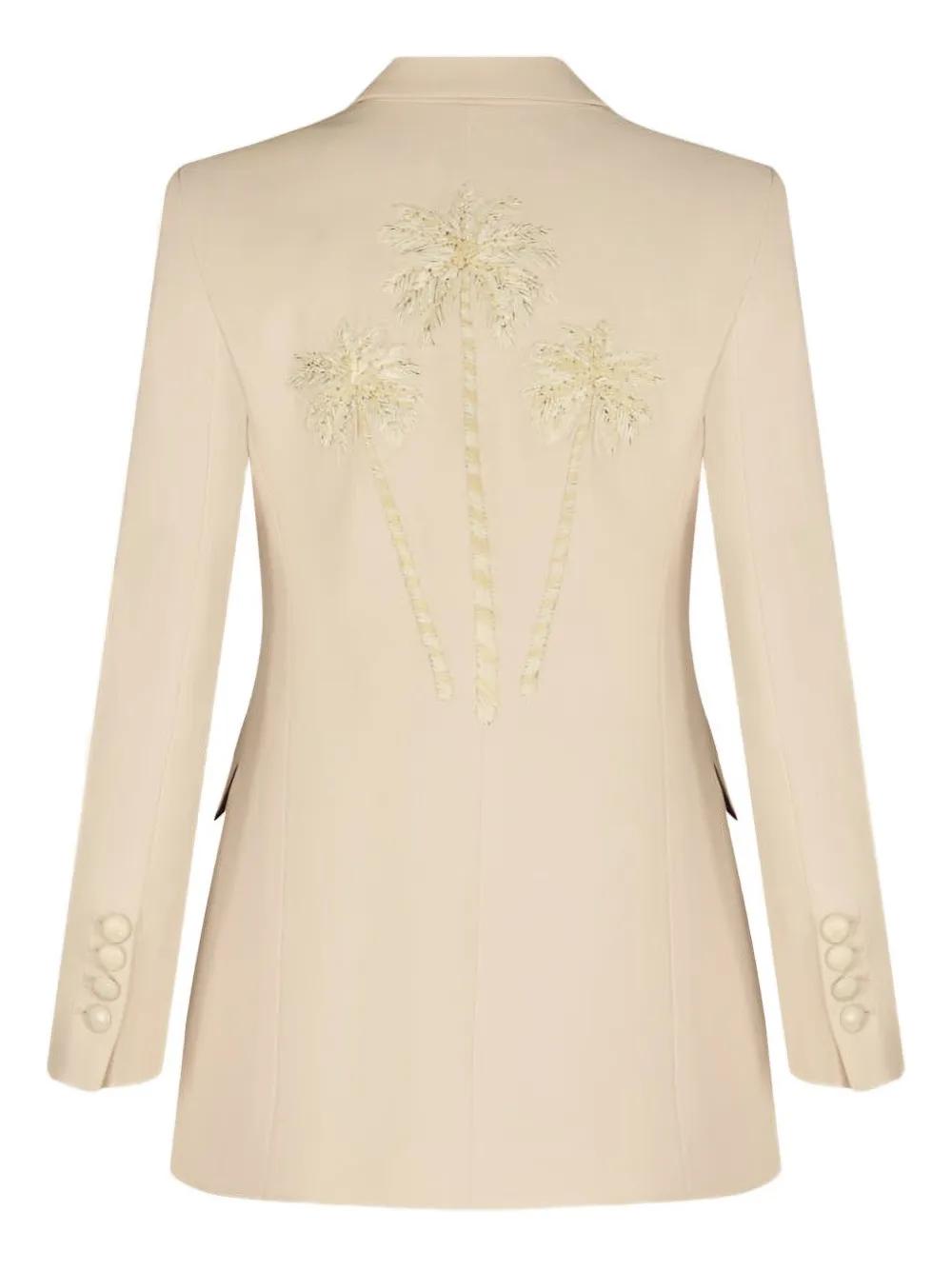 ecru palm tree embroidery double-breasted button fastening peak lapels flap pockets long sleeves straight hem