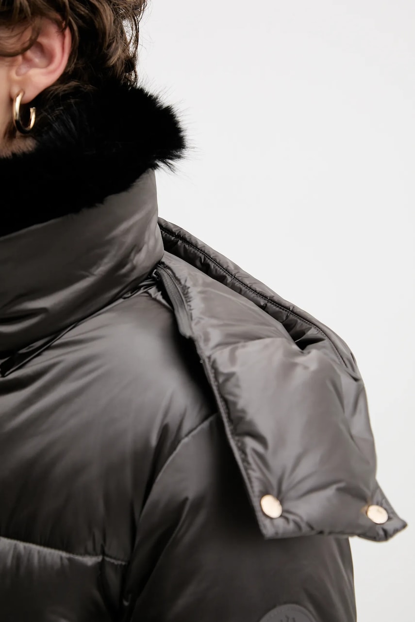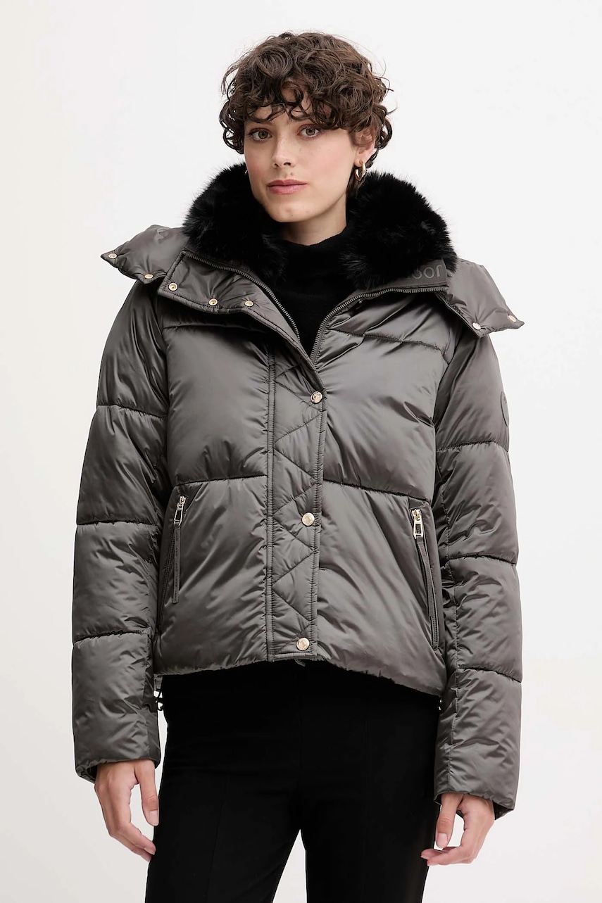 - Ocieplenie z włókien REPREVE wytworzonych ze zutylizowanych plastikowych butelek. - Zapięcie na całej długości na suwak wyposażony w wewnętrzną i zewnętrzną klapkę przeciwsztormową. - Dwie wsuwane i zapinane na suwak kieszenie boczne. - Podwyższony kołnierz i odpinany kaptur gwarantują dodatkową ochronę przed chłodem. - Model z odpinanym, sztucznym futerkiem. - Ocieplony model na podszewce. - Długość rękawa: 63 cm. - Długość: 56 cm. - Szerokość pod pachami: 59 cm. - Wymiary podane dla rozmiaru: 36.