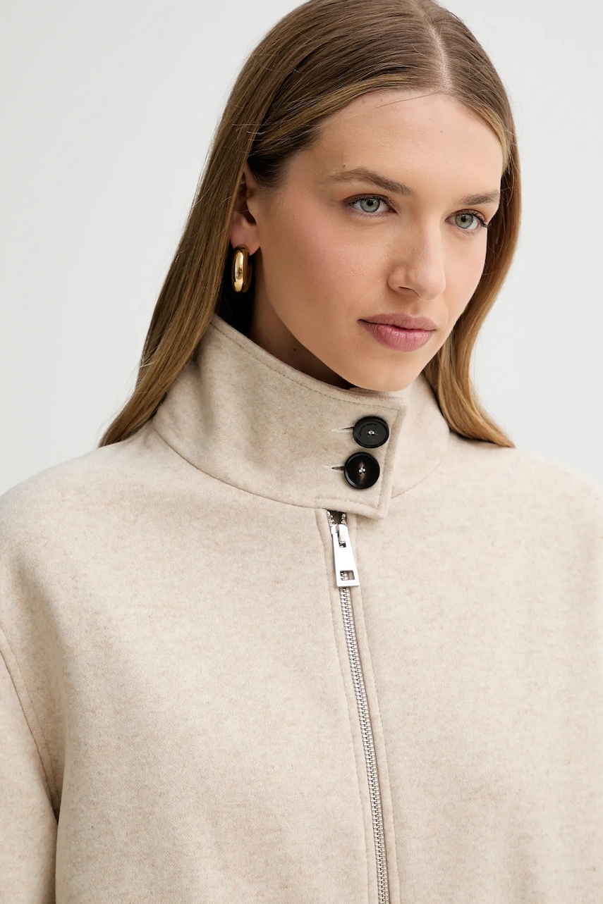 - Luźny krój zapewniający pełną swobodę ruchów. - Zapięcie na suwak i guziki. - Rękawy i dolna krawędź wykończona wygodnym, elastycznym ściągaczem. - Nieocieplony model na podszewce. - Mankiety zapinane na guziki. - Dwie wsuwane kieszenie boczne. - Długość rękawa: 57 cm. - Długość: 59 cm. - Szerokość pod pachami: 58 cm. - Wymiary podane dla rozmiaru: 36.