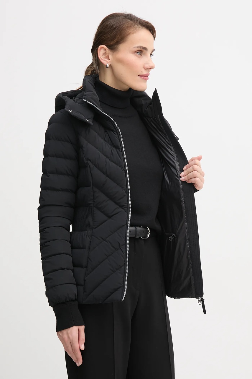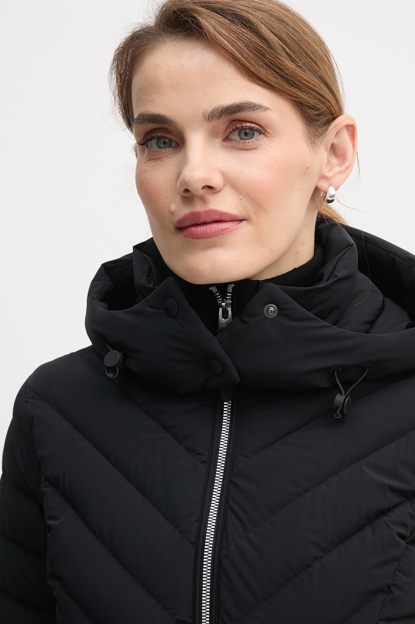- Recycled Blended Claim Standard (RBCS) to standard certyfikacyjny, który dotyczy produktów zawierających materiały pochodzące z recyklingu. Zapewnia wiarygodność informacji o udziale recyklingowanych materiałów w danym produkcie. Standard ten weryfikuje pochodzenie materiałów z recyklingu oraz kontroluje łańcuch dostaw. - Model częściowo wykonany z materiału wyprodukowanego z przetworzonych butelek PET. - Wypełnienie z naturalnego puchu i pierza pochodzącego z recyklingu. - 2. stopień ocieplenia "The go-to" gwarantuje komfort termiczny w temperaturach od -5 do -10°C. - Dopasowany, podkreślający sylwetkę fason. - Podwyższony kołnierz gwarantuje dodatkową ochronę przed chłodem. - Odpinany kaptur, regulowany za pomocą troczków ze stoperami, zwiększa ochronę przed wiatrem i deszczem. - Zapięcie na całej długości na suwak wyposażony w wewnętrzną klapkę przeciwsztormową. - Rękawy wykończone elastyczną lamówką, dzięki której ubranie lepiej przylega do ciała i wygodnie się zakłada. - Dwie kieszenie boczne na ręce zapinane na zamek błyskawiczny. - Dodatkowa kieszeń wewnętrzna pozwala na bezpieczne przechowywanie drobiazgów. - Elastyczna wstawka zapewnia indywidualne dopasowanie. - Długość rękawa: 64 cm. - Długość: 67 cm. - Szerokość pod pachami: 48 cm. - Szerokość w ramionach: 40 cm. - Wymiary podane dla rozmiaru: S.