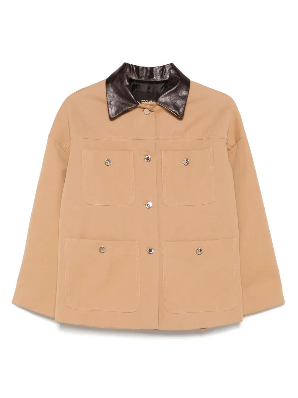 beige front button fastening four front patch pockets drop shoulder straight hem