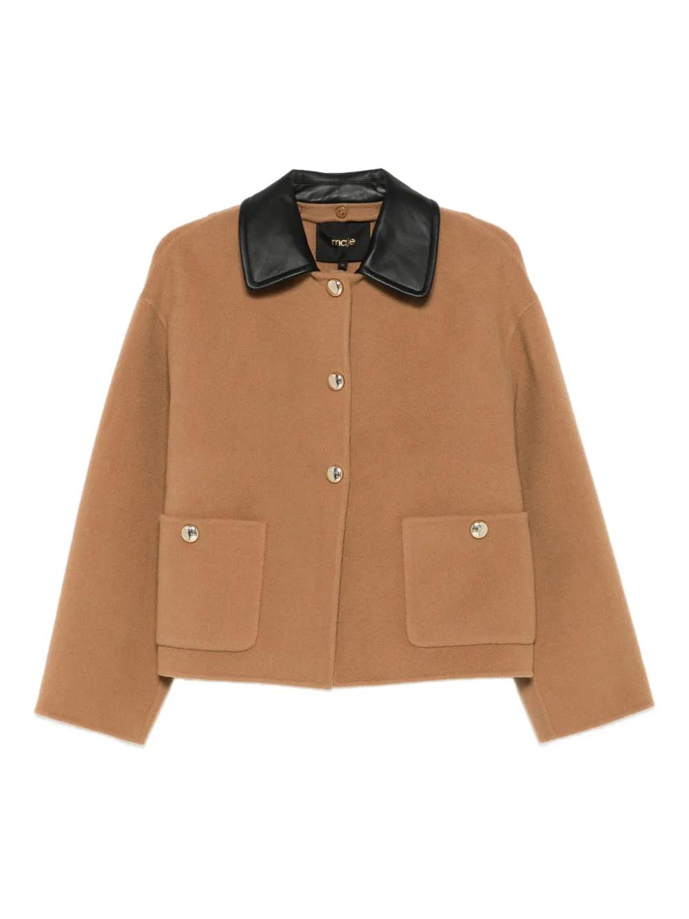 Maje leather-trimmed patch-pocket jacket - Brown