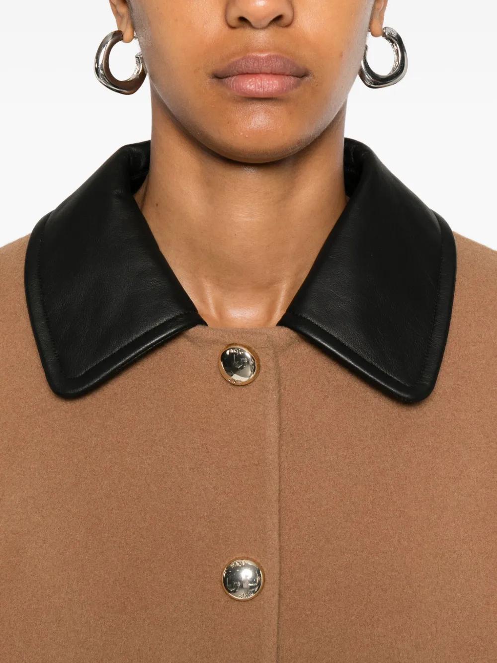 camel brown leather collar patch pockets button fastening gold-tone buttons long sleeves