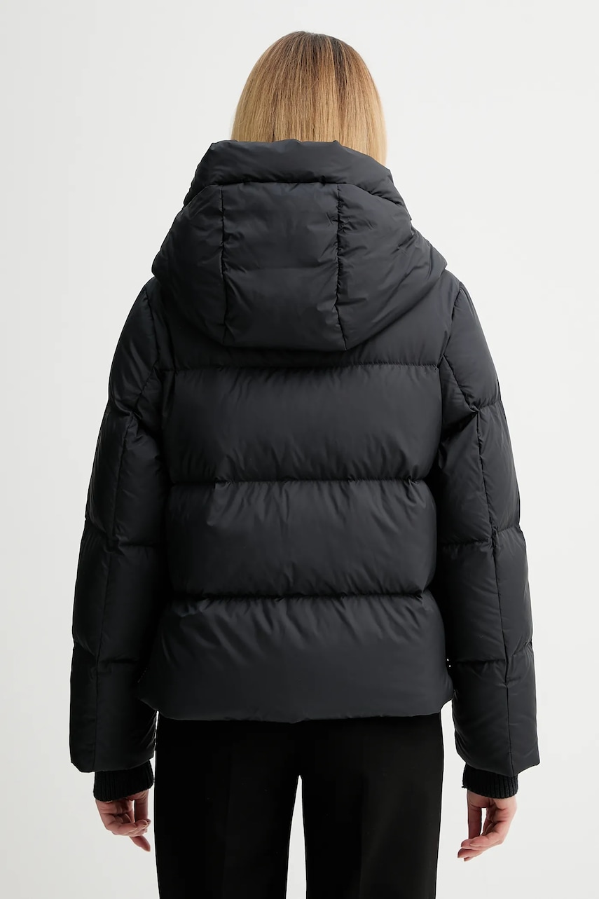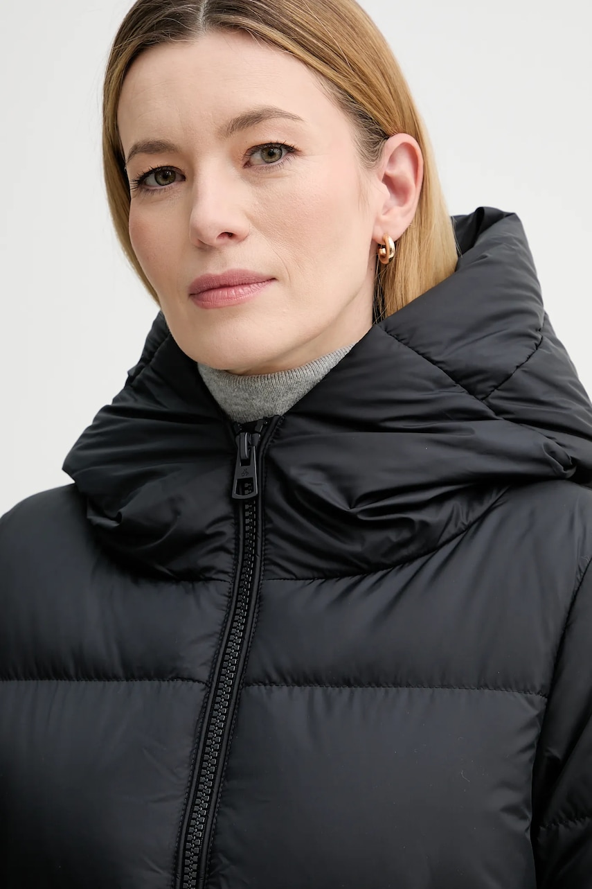 - Responsible Down Standard. Certyfikat R.D.S. gwarantuje, że producent wdrożył u siebie zalecenia, których celem jest zminimalizowanie cierpień ptaków hodowlanych (m.in. - zobowiązanie do zaniechania pozyskiwania puchu i pierza z żywych ptaków oraz karmienia ptaków siłą czy ścisła kontrola każdego etapu łańcucha dostaw przez profesjonalną, niezależną jednostkę cerytfikującą). 100% puchu i pierza, zawartego w produkcie, pochodzi z dostaw kontrolowanych. - Prosty, nie blokujący ruchów fason. - Długie rękawy wykończone wygodnym, elastycznym ściągaczem. - Podwyższony kołnierz i nieodpinany kaptur gwarantują dodatkową ochronę przed chłodem. - Zapięcie na całej długości na suwak wyposażony w wewnętrzną klapkę przeciwsztormową. - Suwaki po bokach kurtki. - Dwie wsuwane i zapinane na zatrzask kieszenie boczne. - Długość rękawa: 68 cm. - Długość: 59 cm. - Szerokość pod pachami: 54 cm. - Szerokość w ramionach: 41 cm. - Wymiary podane dla rozmiaru: 36.