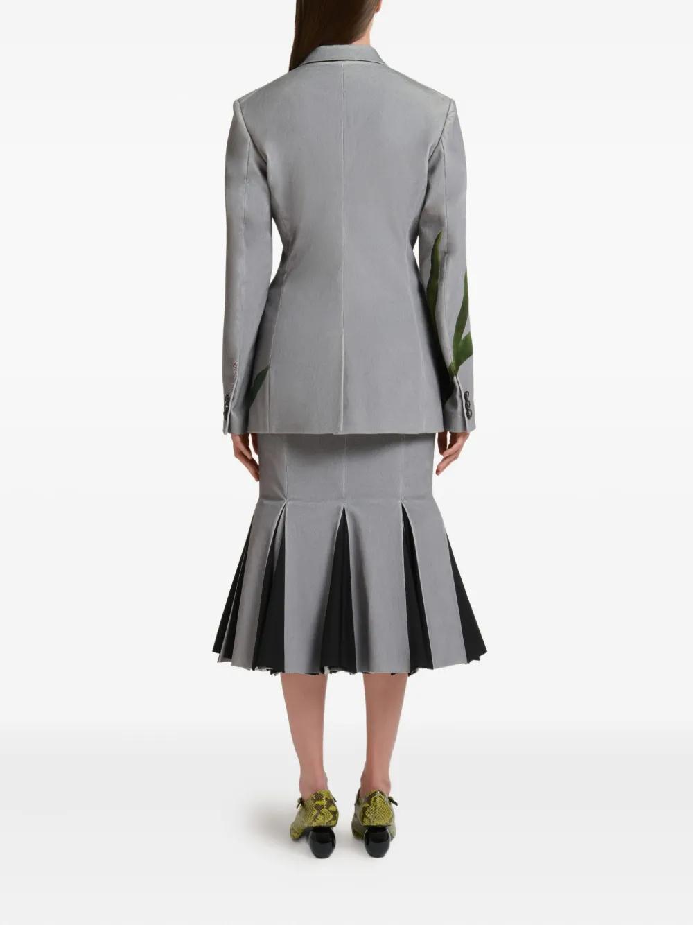 grey tulip print four-button fastening welt chest pocket flap pockets