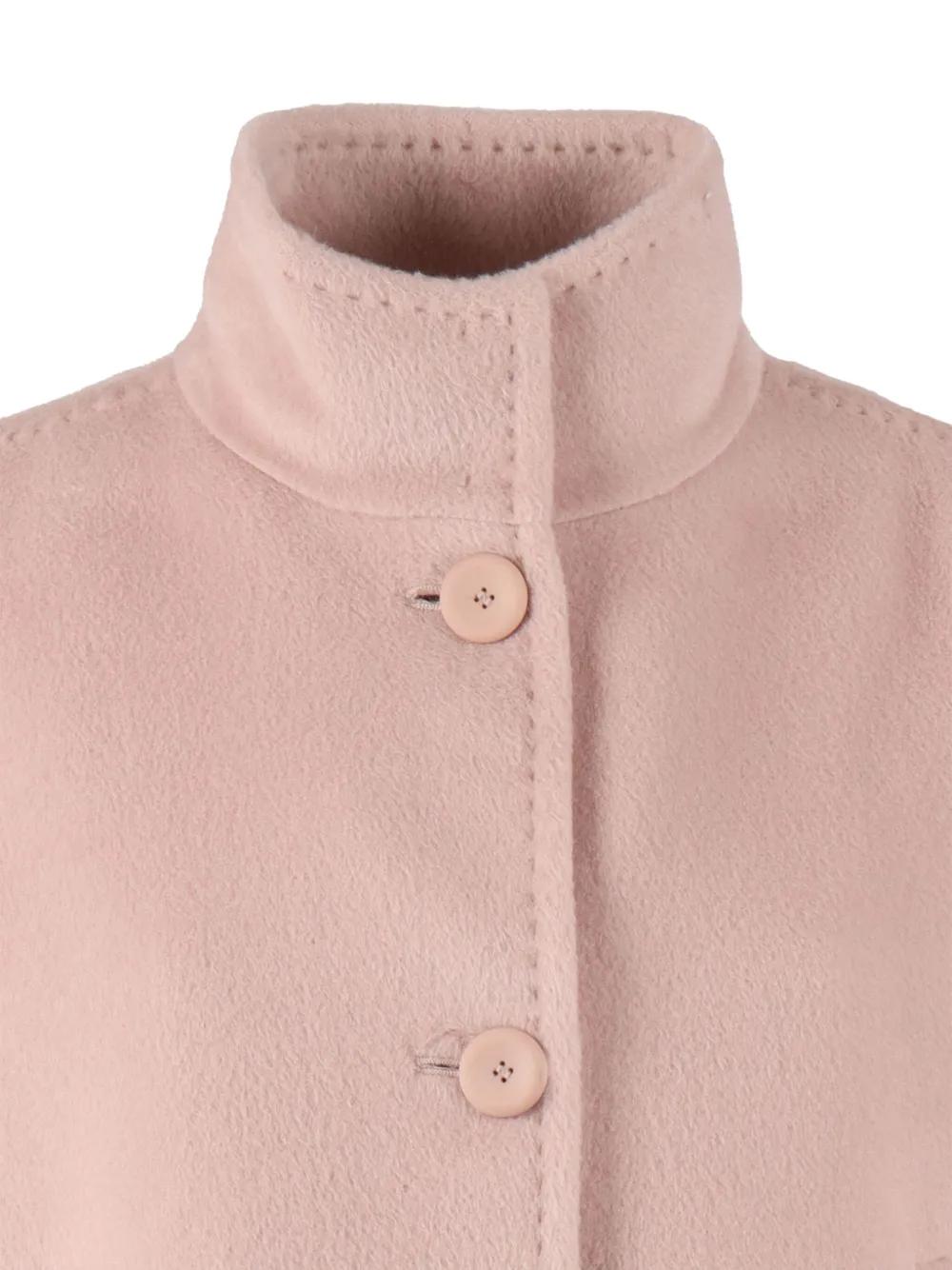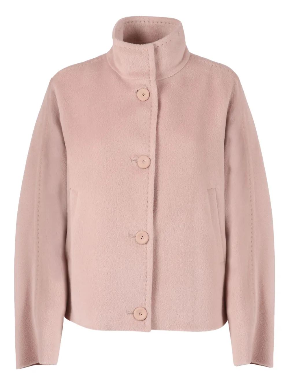 rose alpaca wool blend high neck button fastening topstitching front pockets