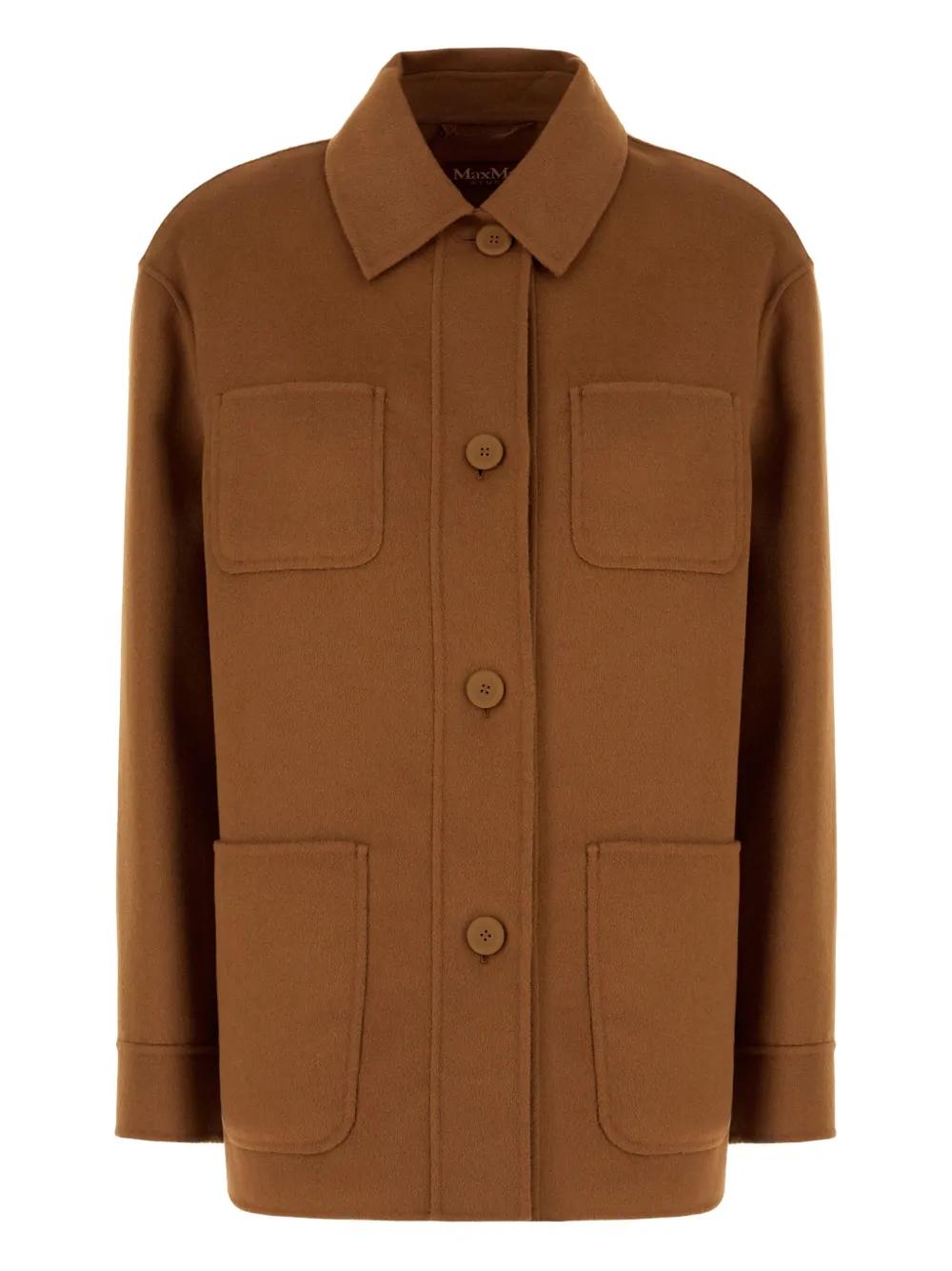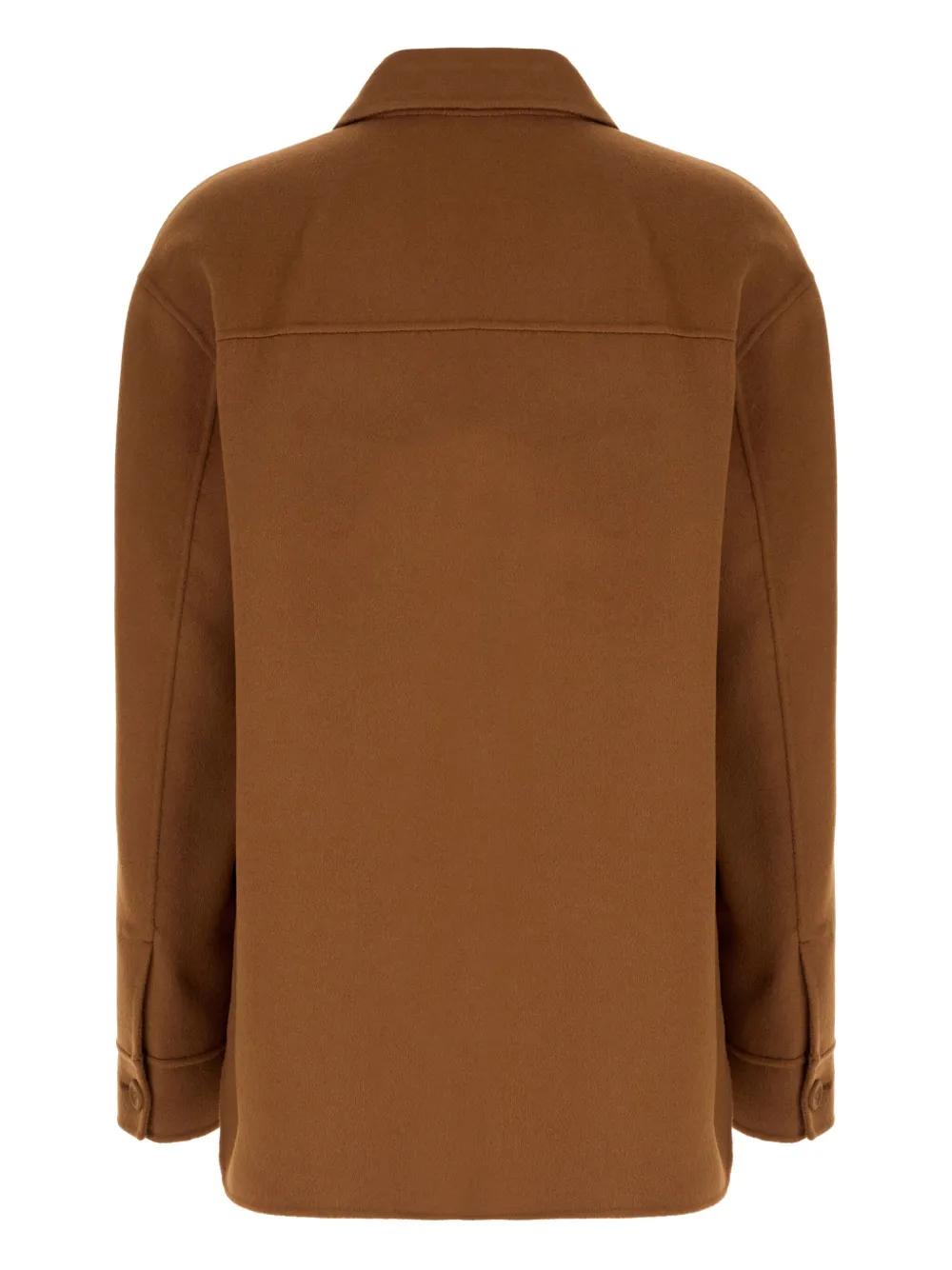 brown patch pockets button fastening polo collar long sleeves straight hem