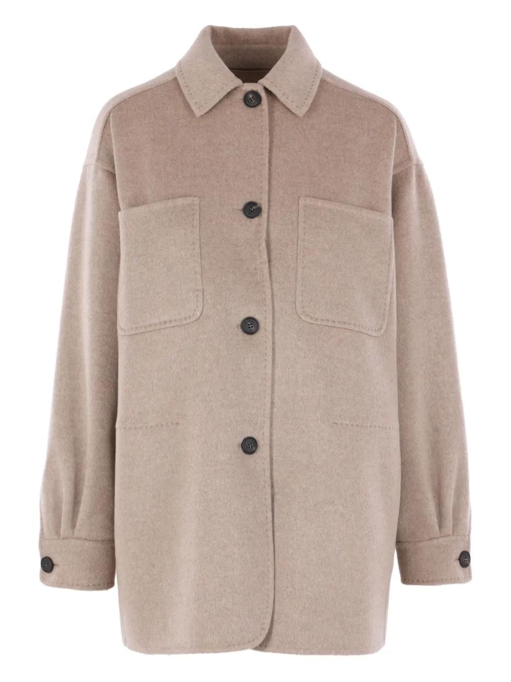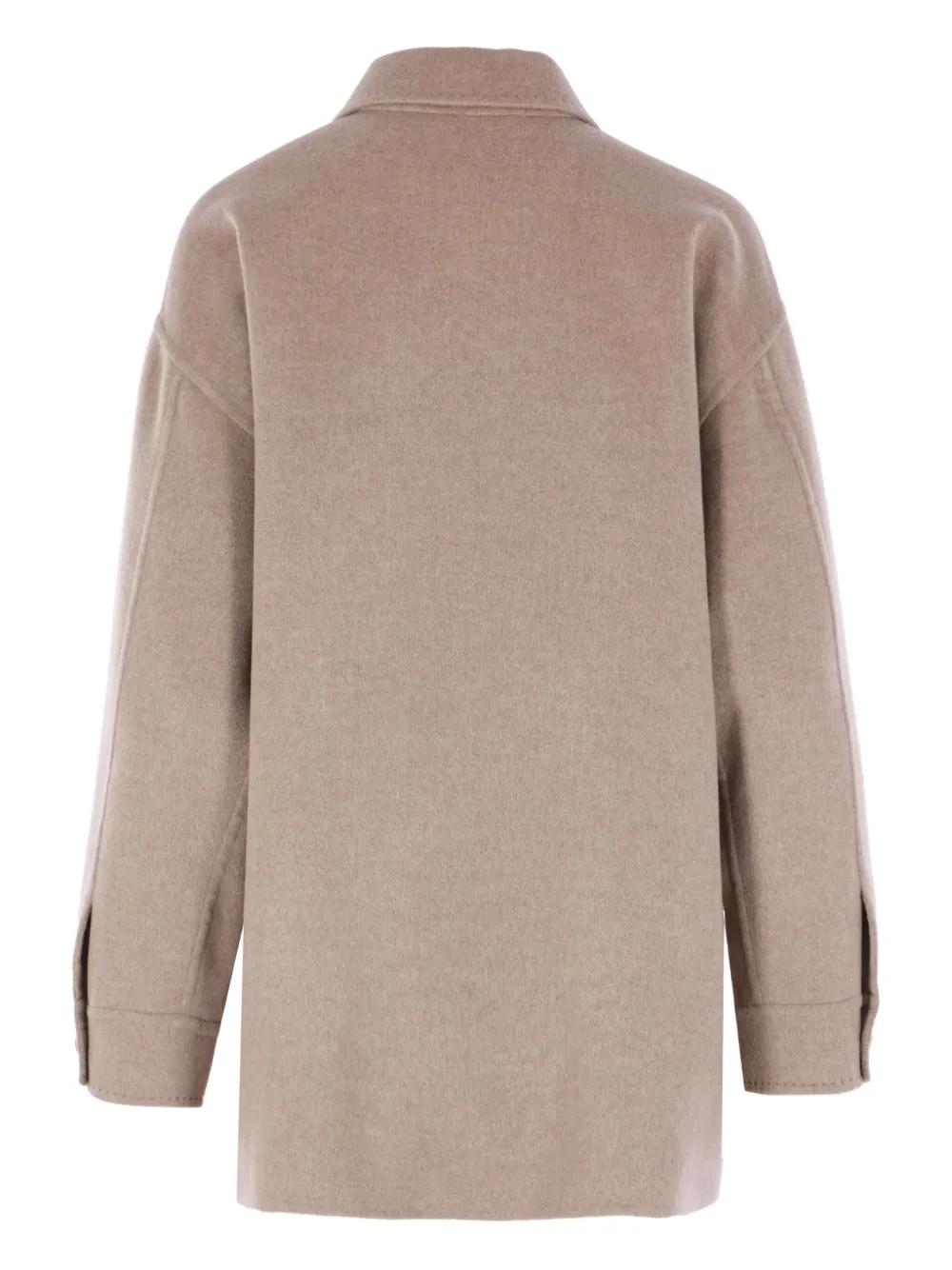 brown button fastening point collar long sleeves chest patch pockets topstitching