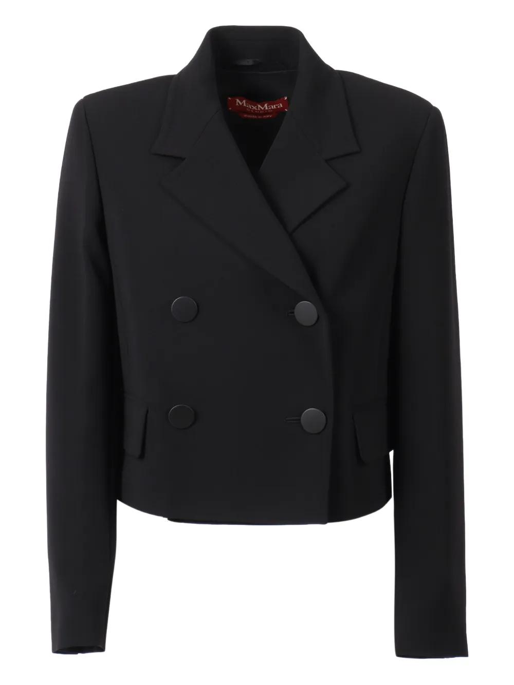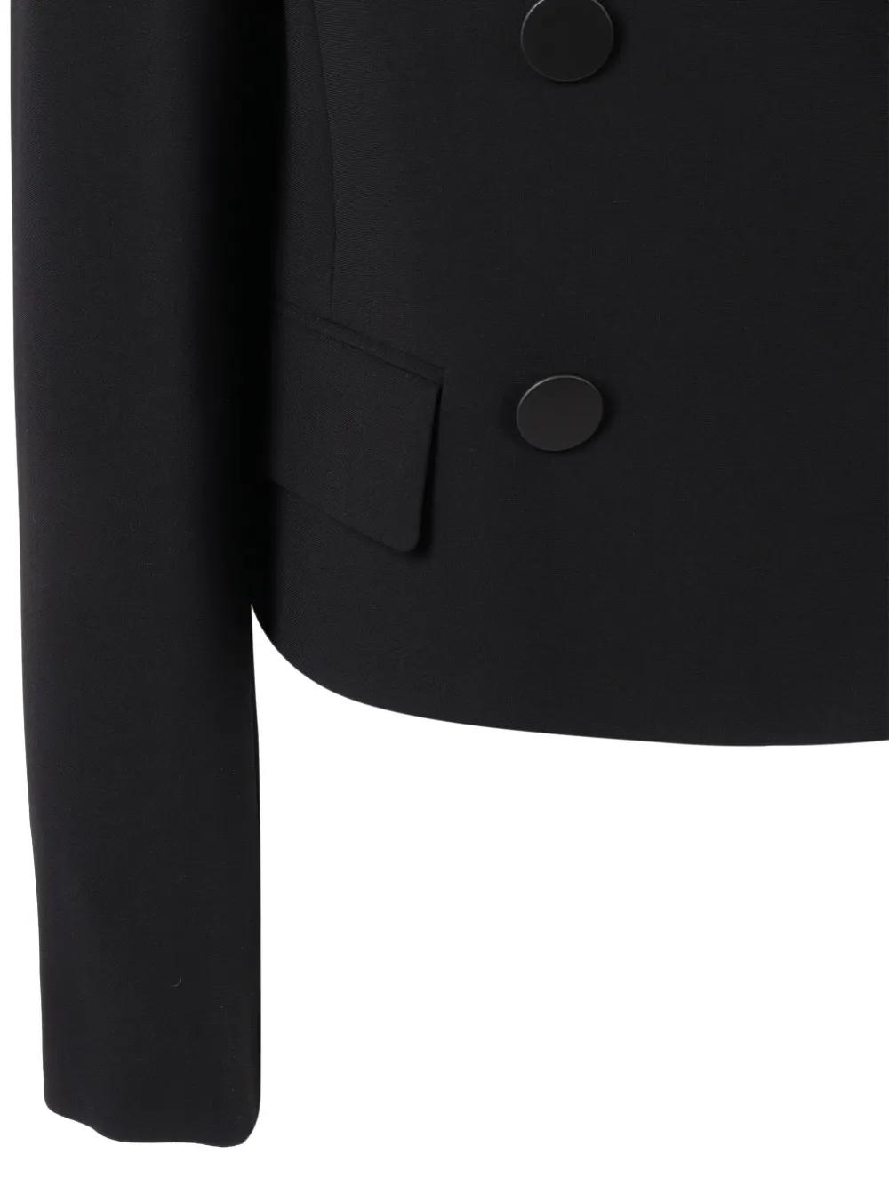 black double-breasted button fastening notched lapels flap pockets long sleeves