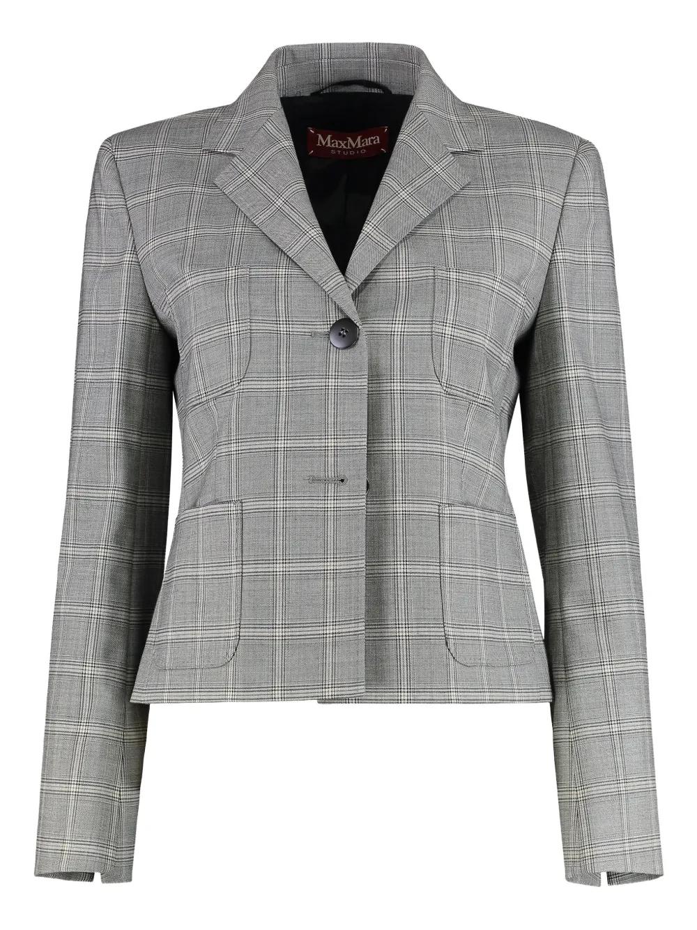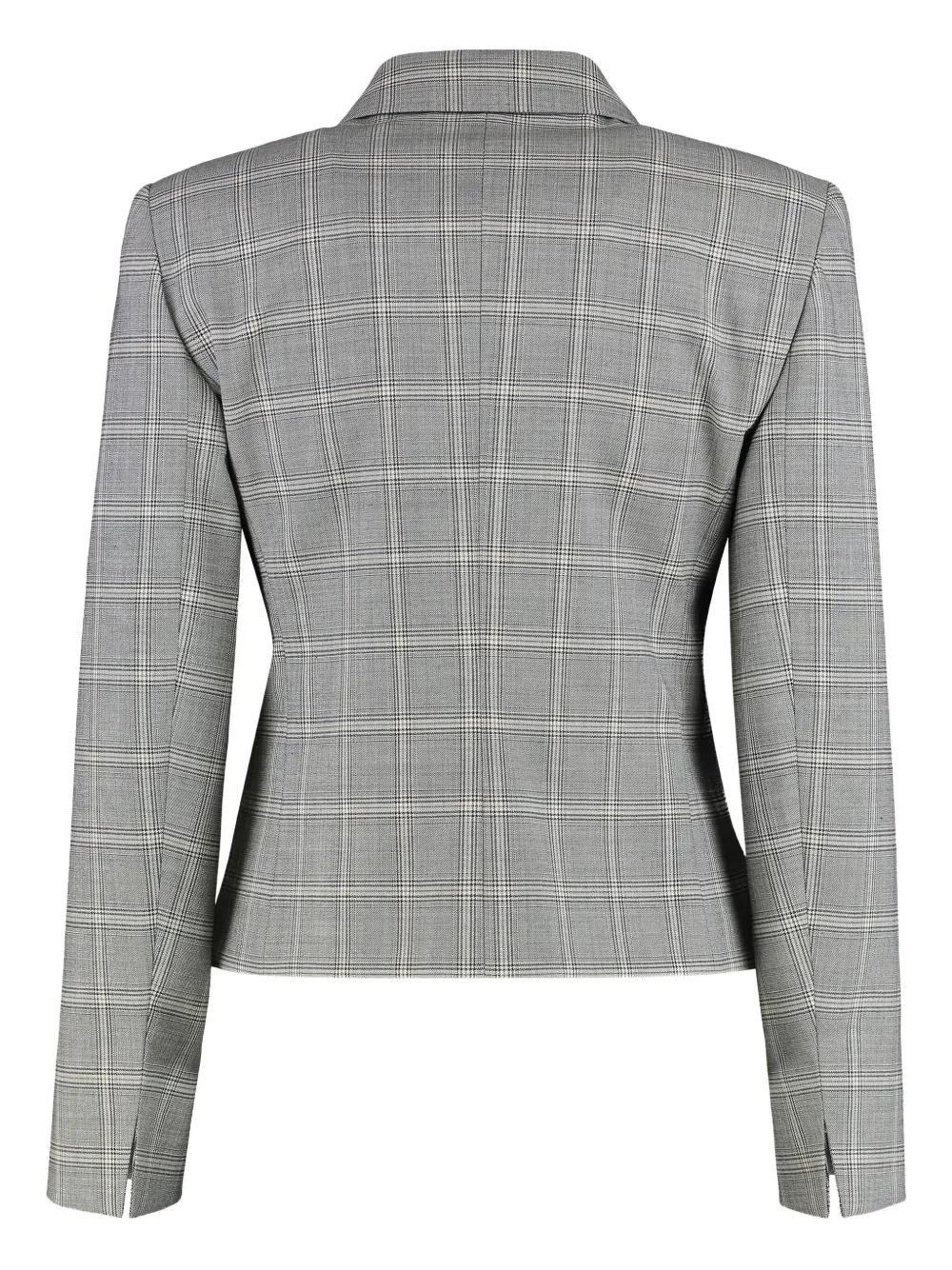 grey checked pattern notched lapels two-button fastening four front pockets single-breasted