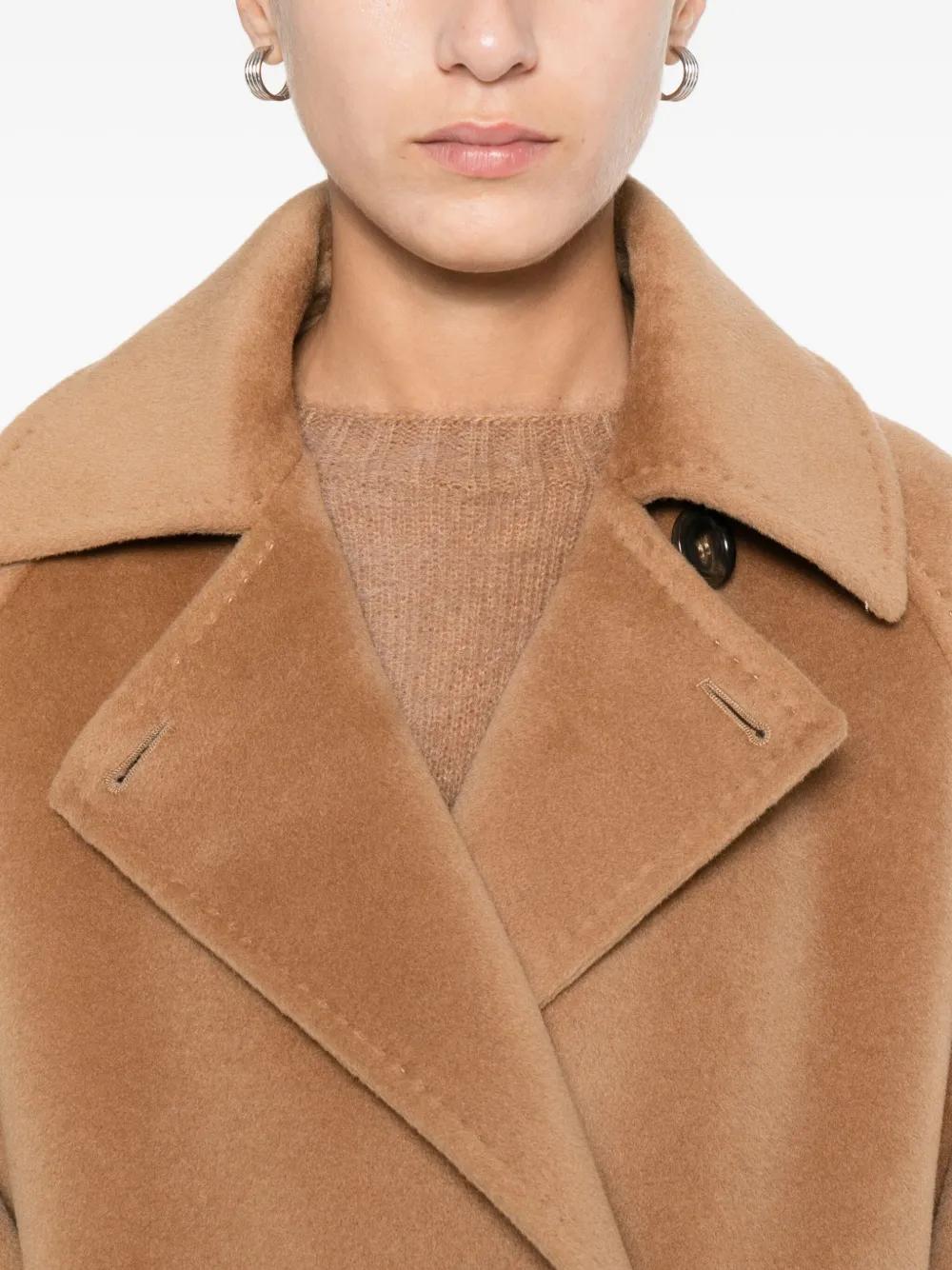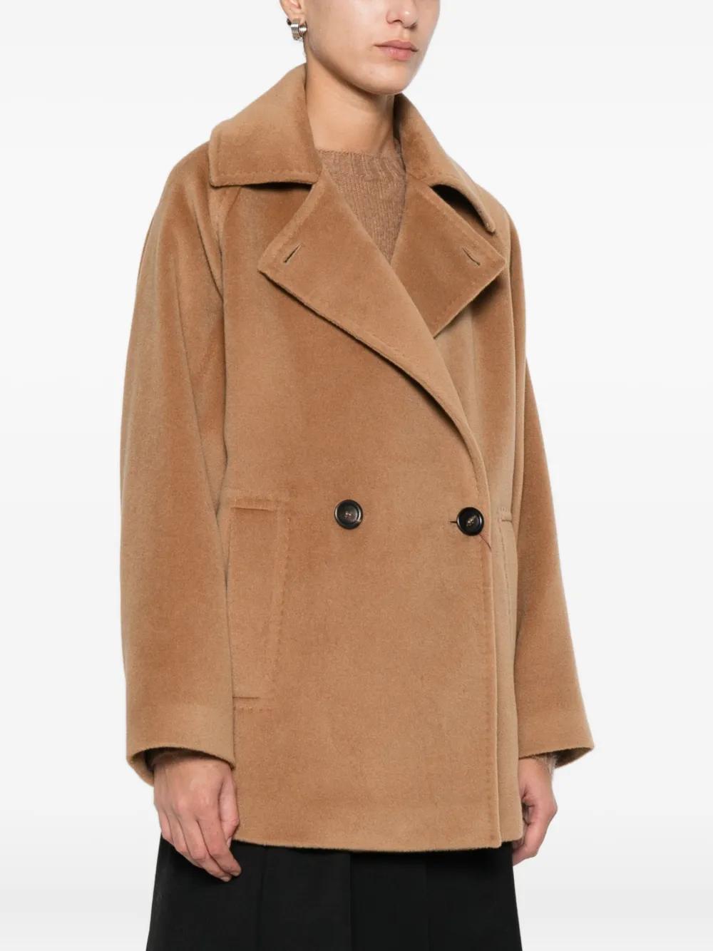 brown double-breasted button fastening notched lapels front flap pockets long sleeves