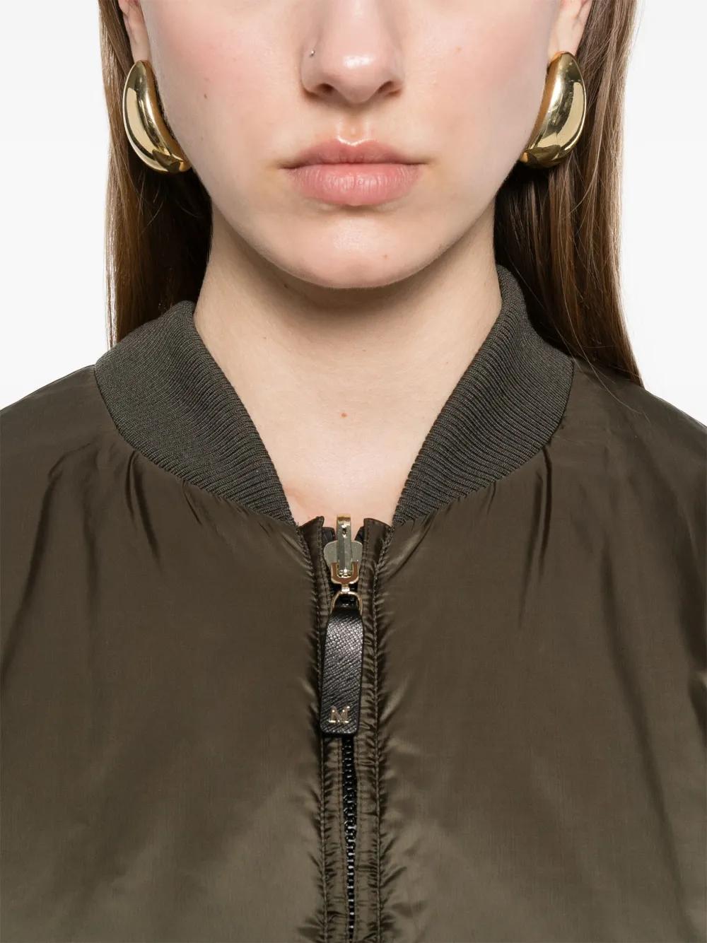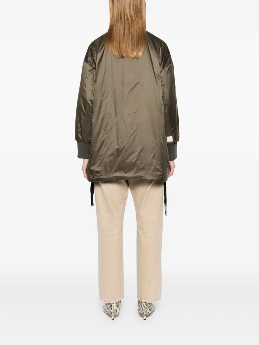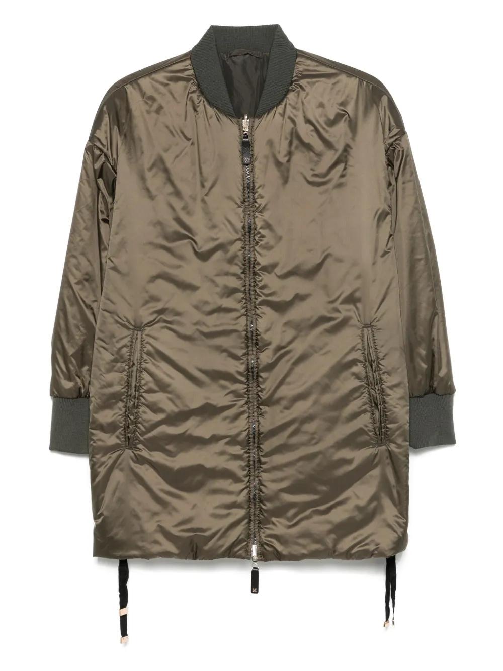 olive green front two-way zip fastening padded design two side slit pockets drawstring hem