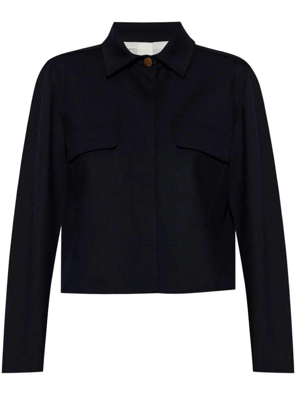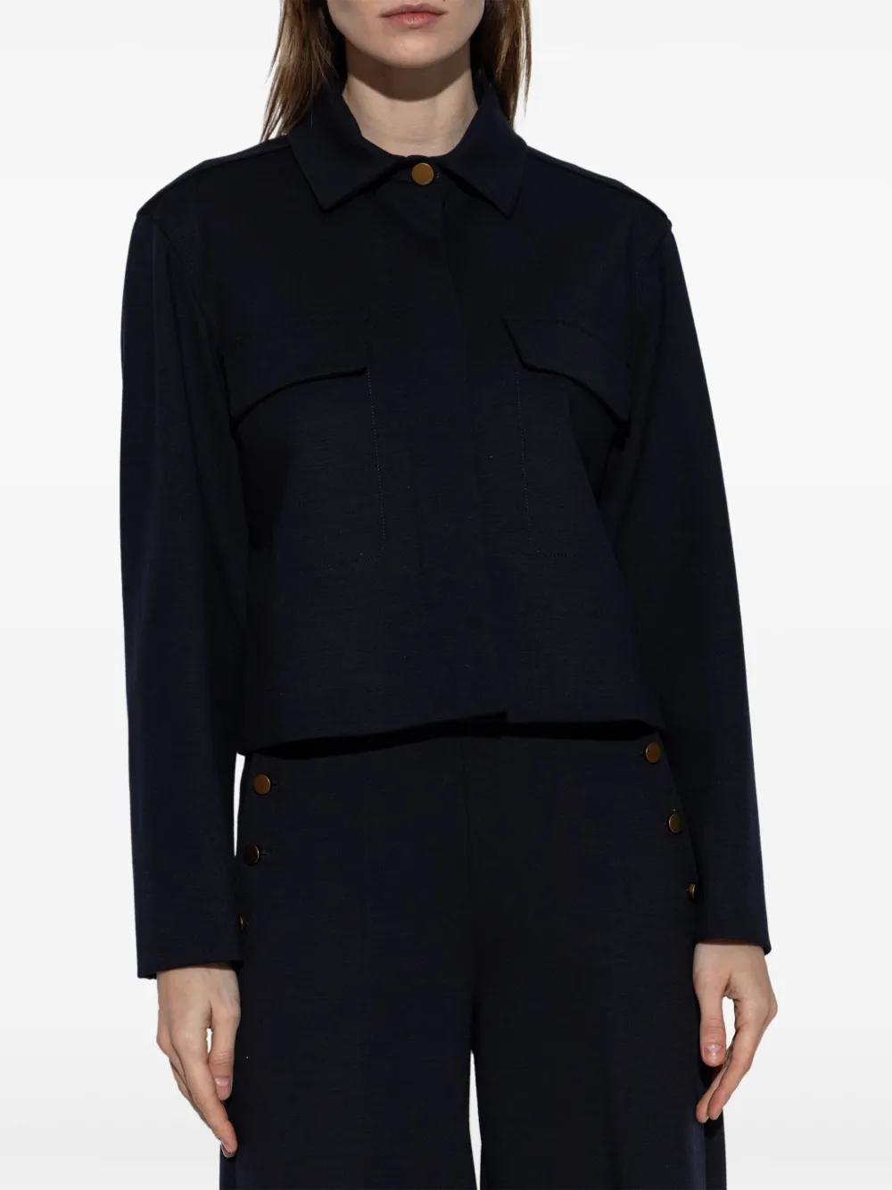 navy blue concealed front button fastening two chest flap pockets classic collar long sleeves