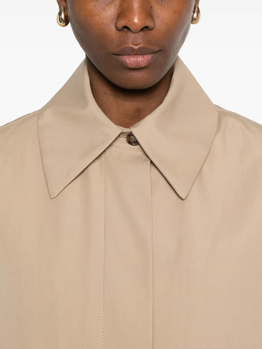 sand beige front button fastening side button fastening two front welt pockets removable lining