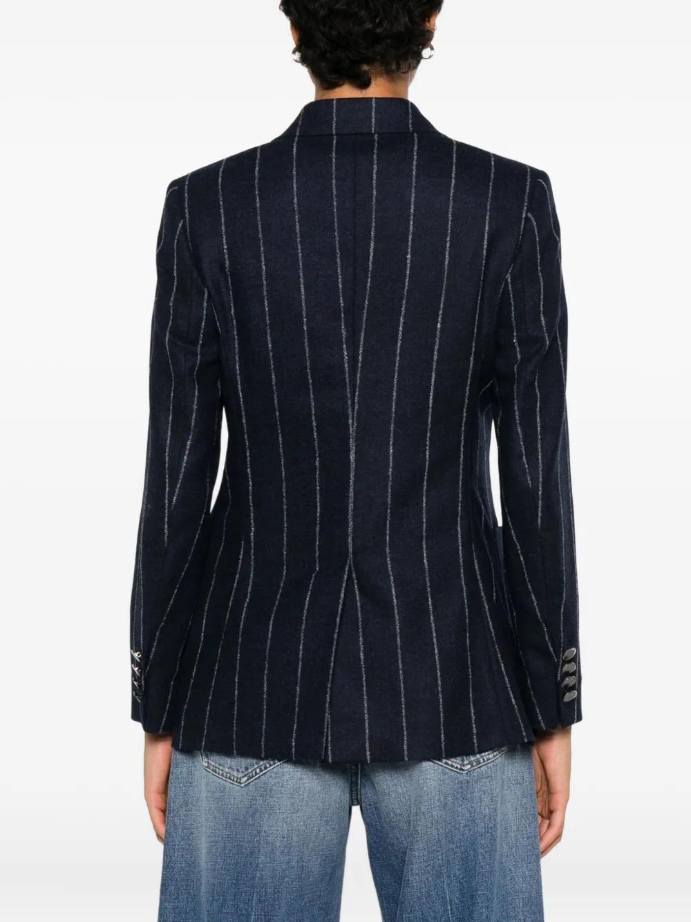 blue pinstripe pattern double-breasted button fastening notched lapels flap pockets