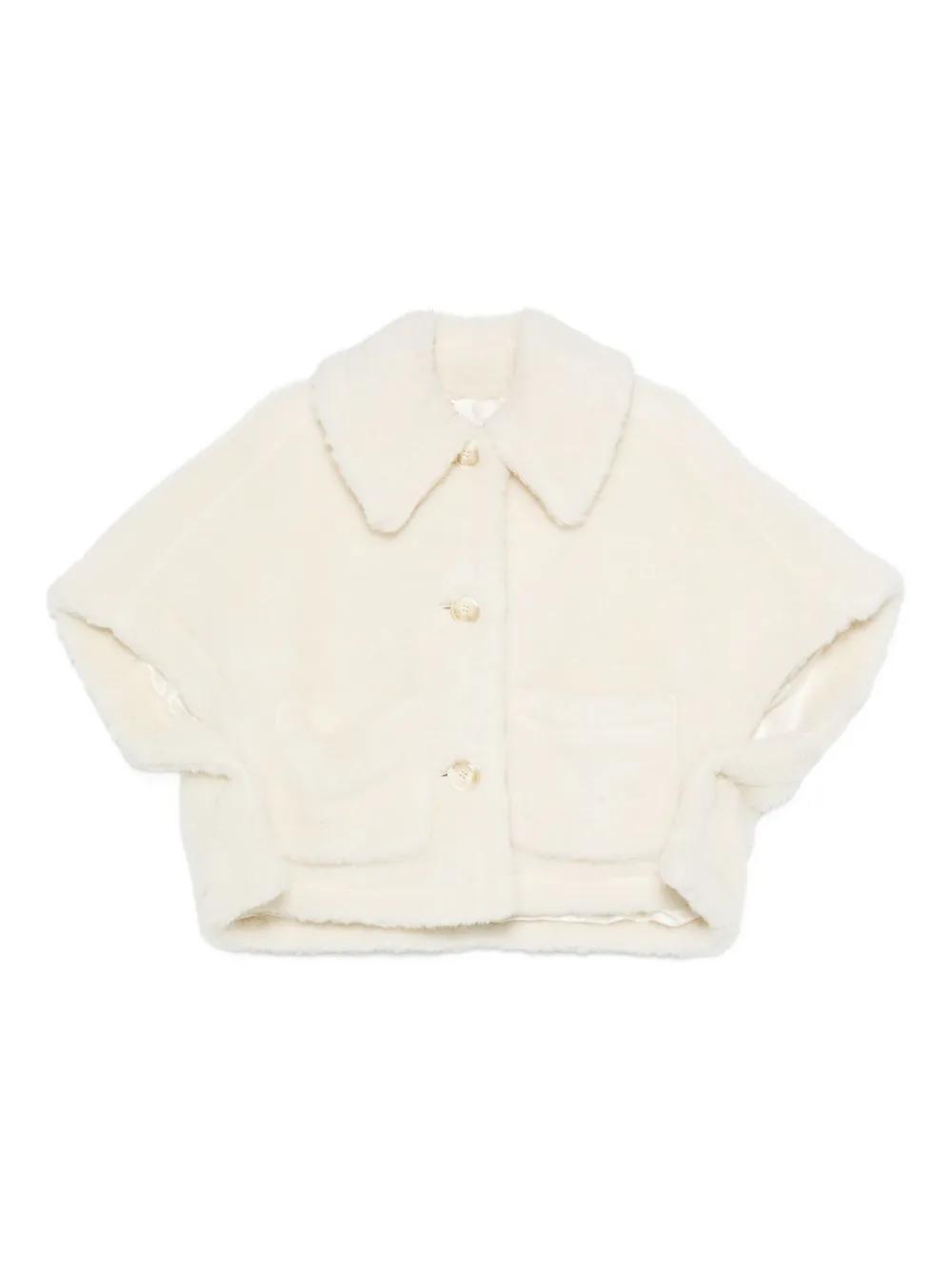 white short sleeves button fastening patch pockets collared neckline textured fleece