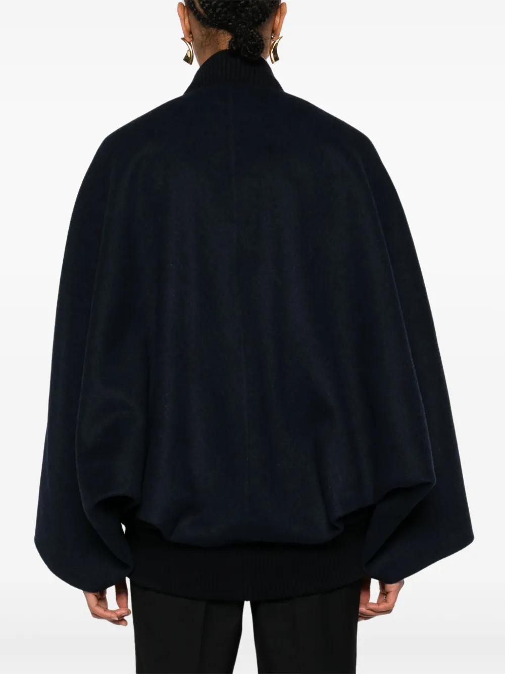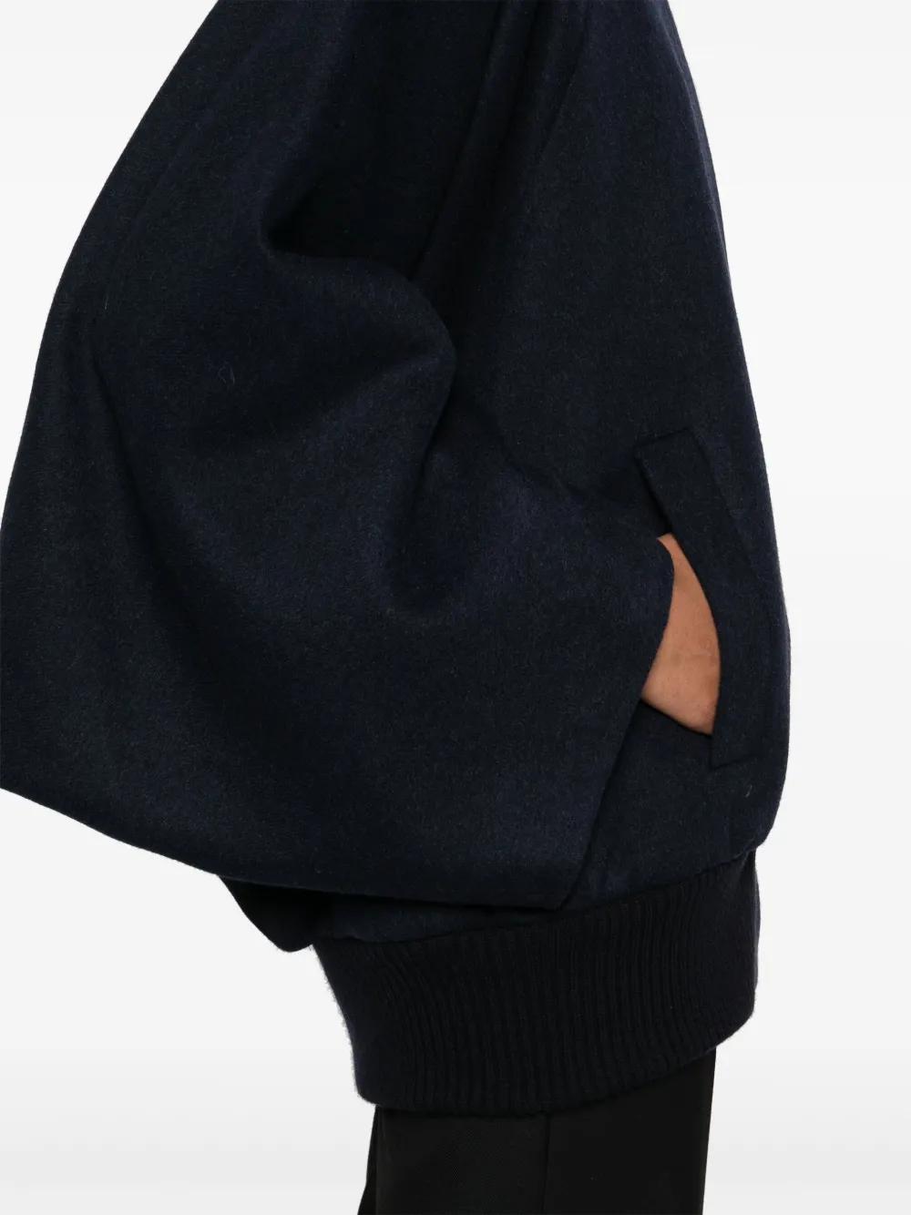 oxford blue cashmere brushed effect front press-stud and zip fastening ribbed trim baseball collar long batwing sleeves two side welt pockets logo-jacquard lining straight hem