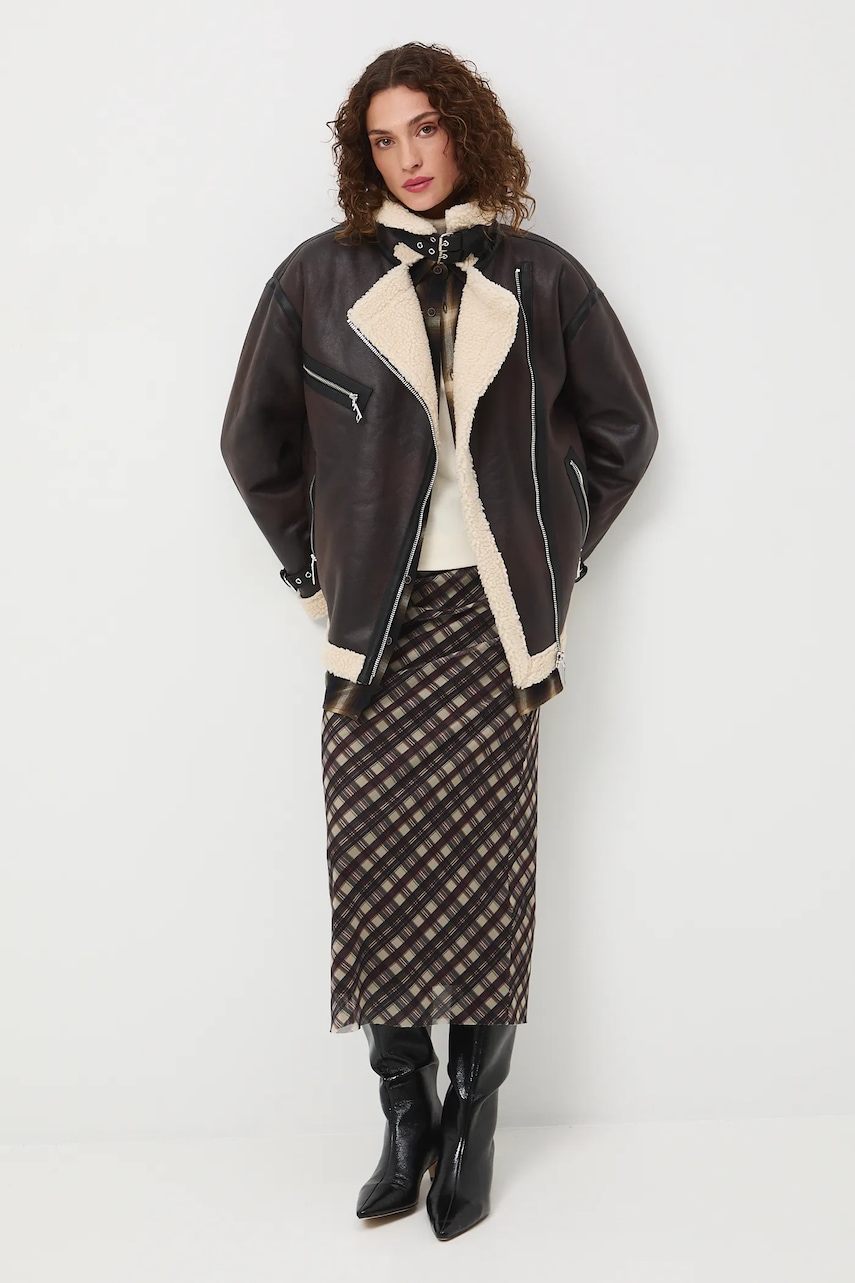 Medicine kurtka biker damska kolor brązowy przejściowa oversize