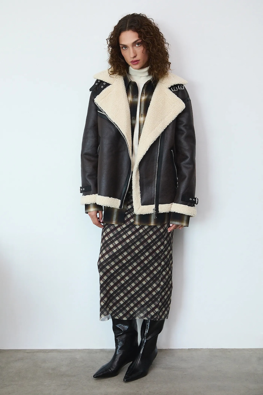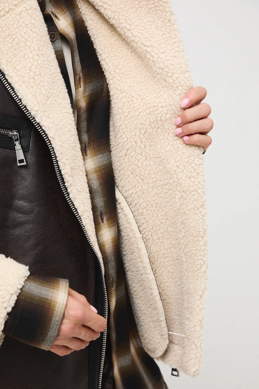 - Fason oversize. - Długi rękaw. - Obniżona linia ramion. - Zapięcie na suwak. - Przy kołnierzu zapięcie na klamry ze szpilką. - Przy rękawach zapięcie na klamrę ze szpilką. - Dwie wsuwane i zapinane na suwak kieszenie boczne. - Kieszonka na piersi zapinana na suwak. - Po wewnętrznej stronie miękkie i przyjemne w dotyku futerko. - Długość rękawa(mierzona od kołnierza): 75,2 cm. - Długość: 69 cm. - Szerokość w biuście: 56 cm. - Wymiary podane dla rozmiaru: S.