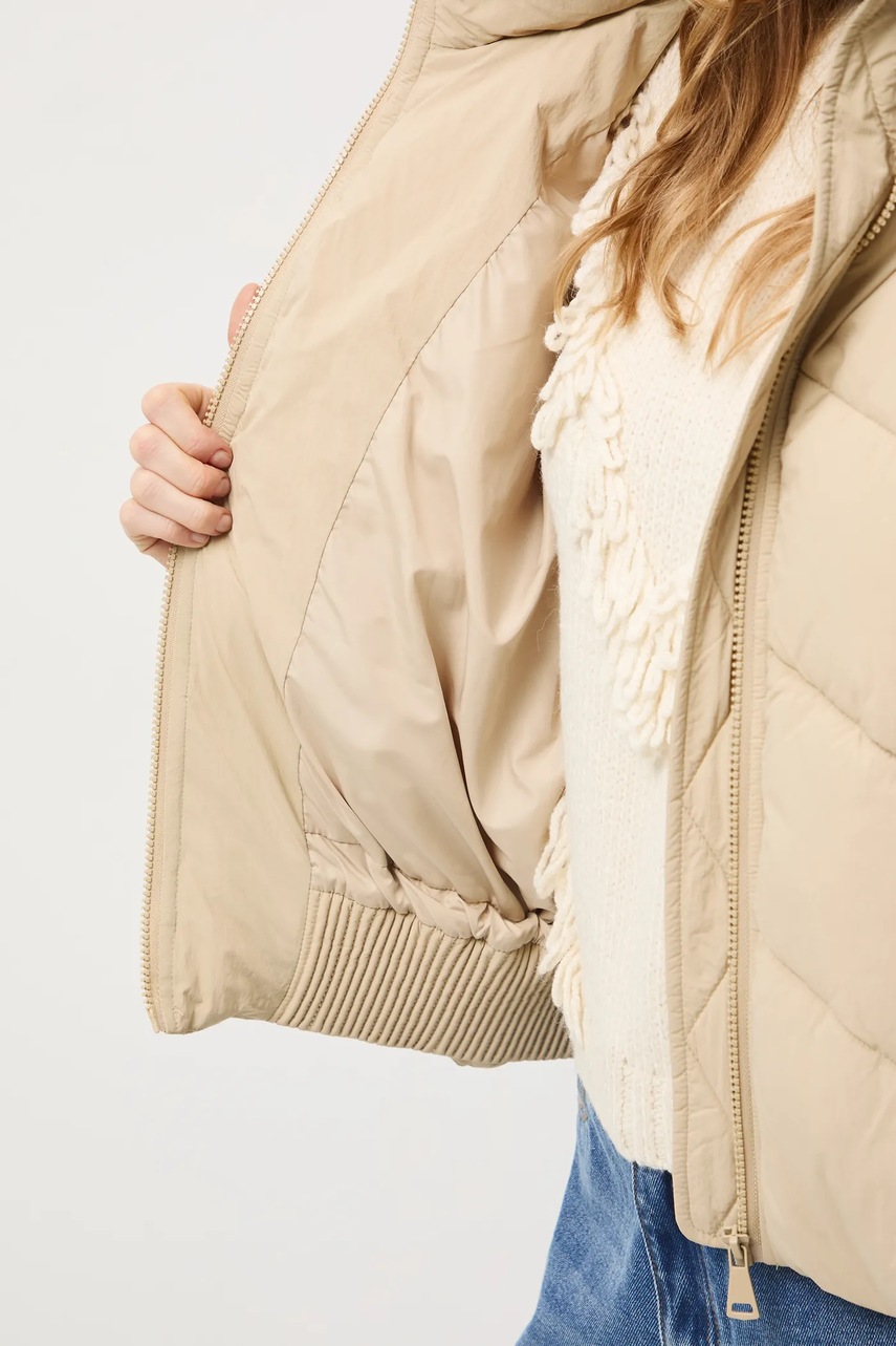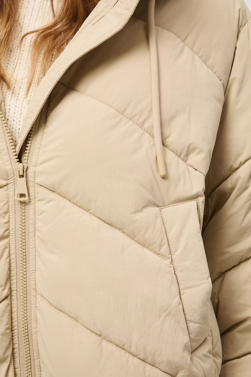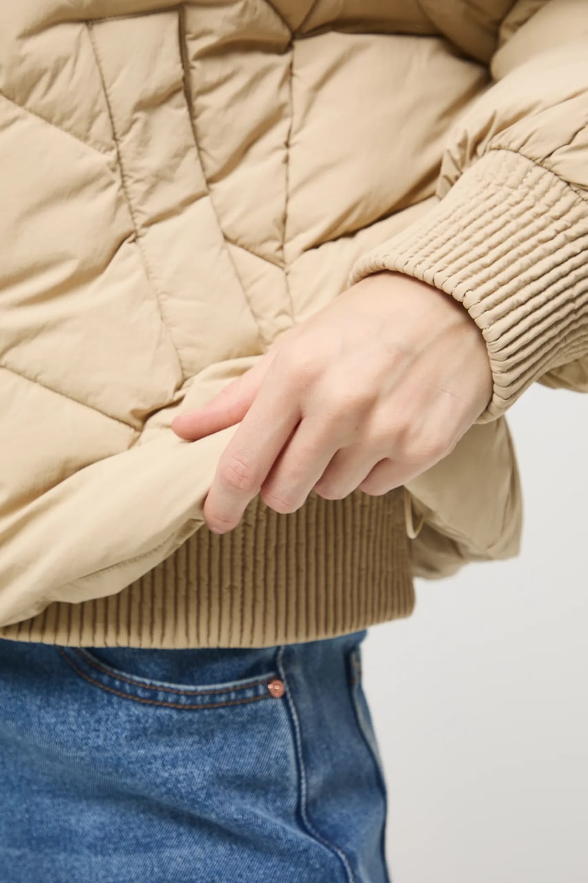 - Fason oversize. - Podwyższony kołnierz. - Zapięcie na suwak. - Kaptur ściągany troczkami. - Wykończenie ze ściągacza. - Dwie wsuwane kieszenie boczne. - Ocieplony model na podszewce. - Pikowany model. - Długość rękawa: 61 cm. - Długość: 63 cm. - Szerokość w biuście: 76 cm. - Szerokość w barkach: 54 cm. - Wymiary podane dla rozmiaru: S.