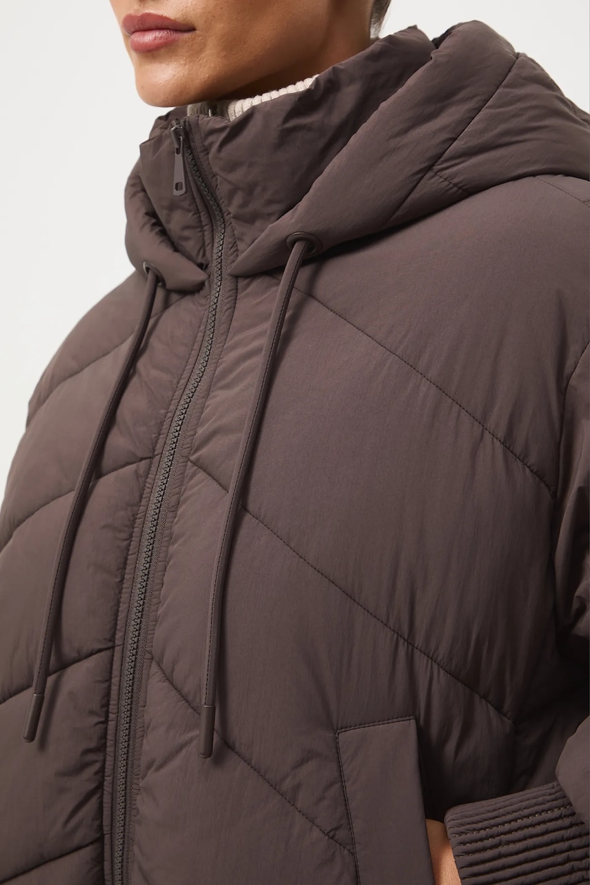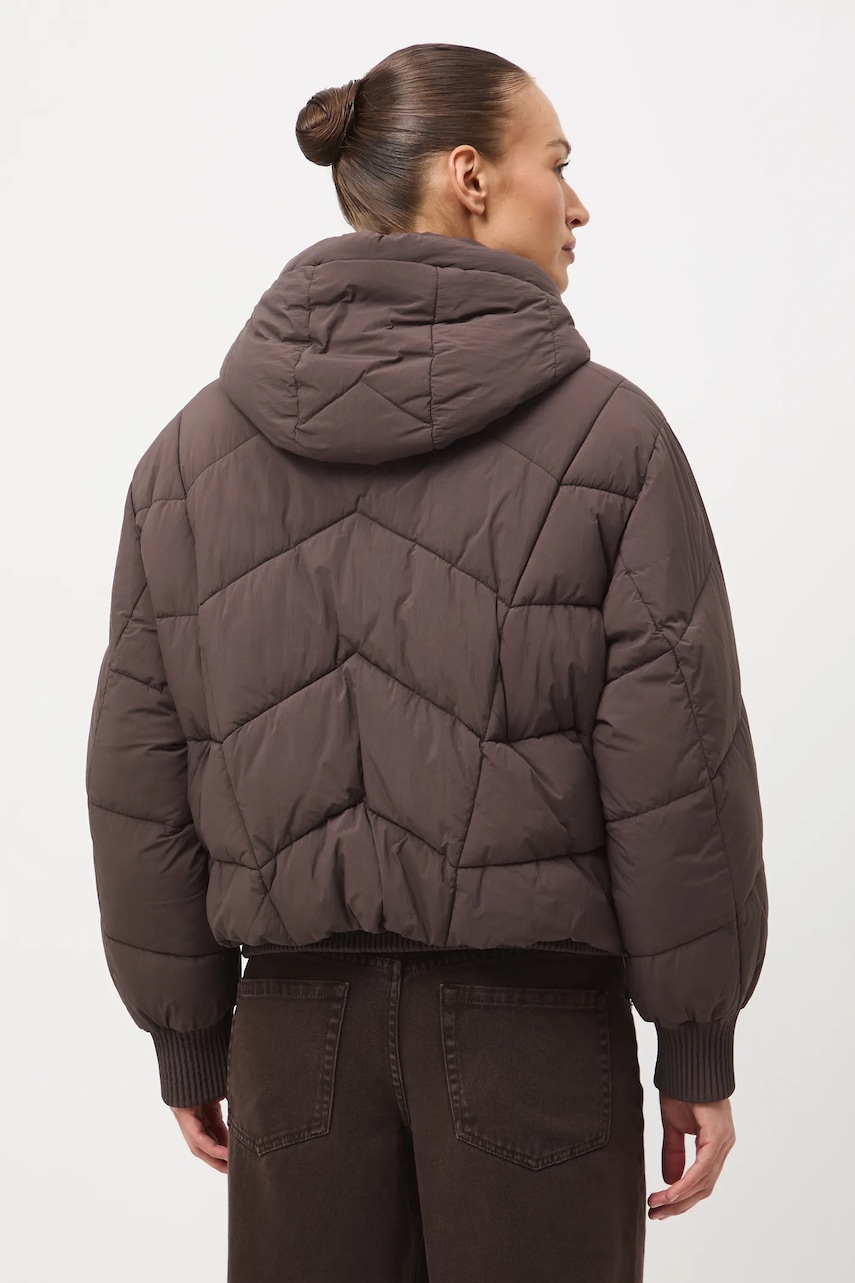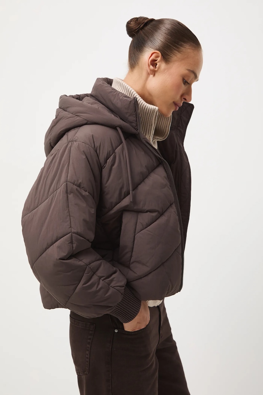 - Fason oversize. - Podwyższony kołnierz. - Zapięcie na suwak. - Kaptur ściągany troczkami. - Wykończenie ze ściągacza. - Dwie wsuwane kieszenie boczne. - Ocieplony model na podszewce. - Pikowany model. - Długość rękawa: 61 cm. - Długość: 63 cm. - Szerokość w biuście: 76 cm. - Szerokość w barkach: 54 cm. - Wymiary podane dla rozmiaru: S.