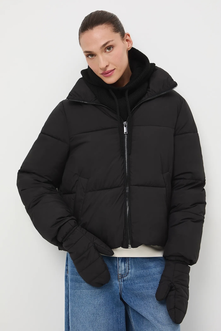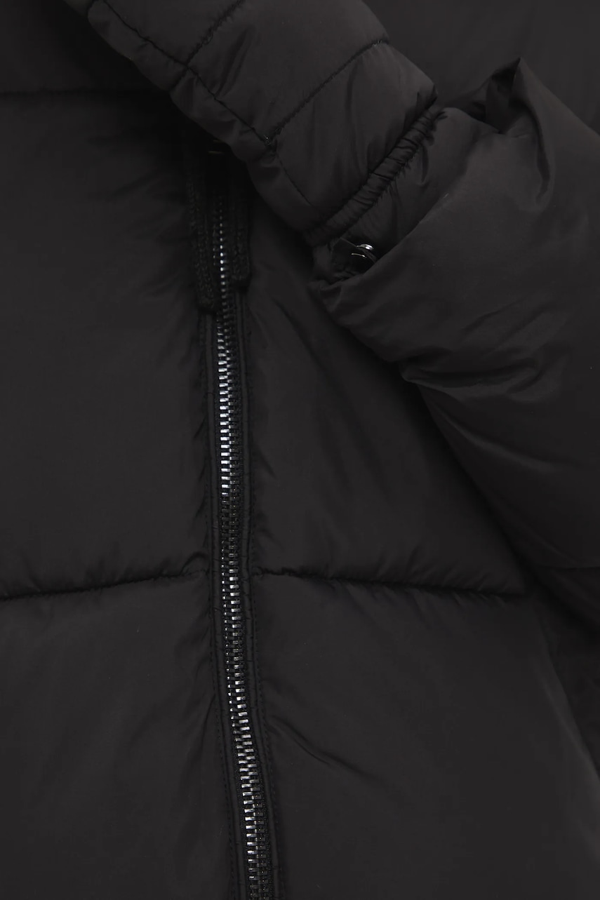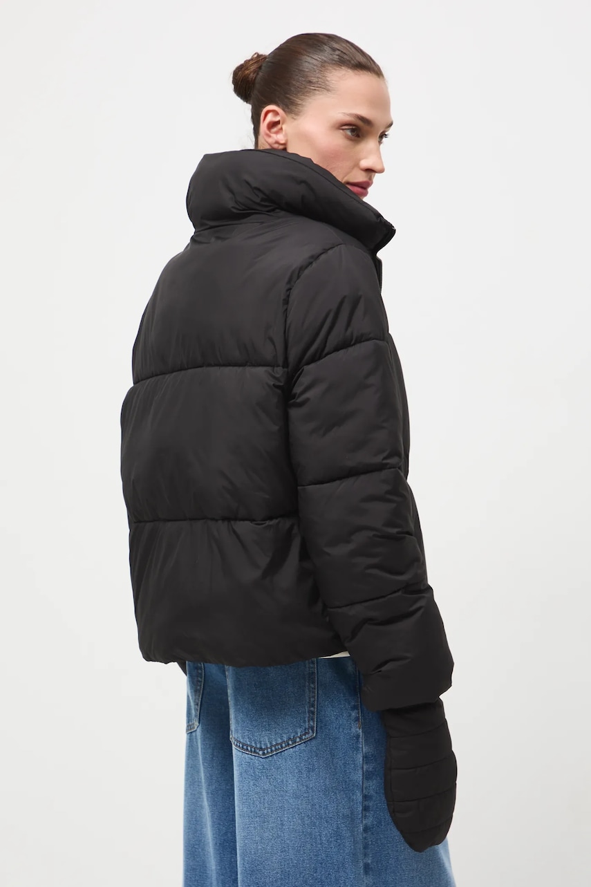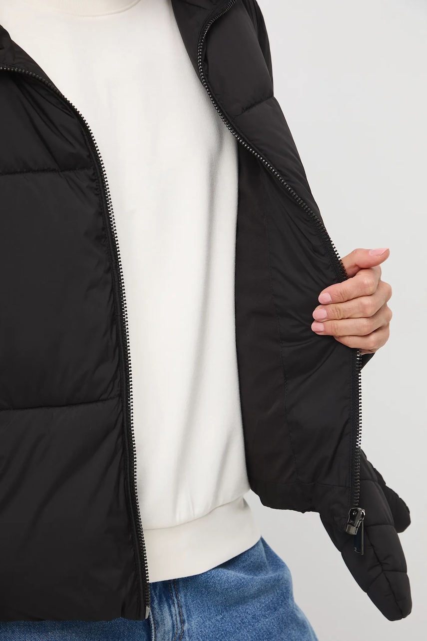 - Fason oversize. - Podwyższony kołnierz. - Zapięcie na suwak. - Wsuwane kieszenie. - Dopinane na zatrzaski rękawiczki. - Ocieplony model na podszewce. - Pikowany model. - Długość rękawa: 65 cm. - Długość: 62 cm. - Szerokość w biuście: 62 cm. - Wymiary podane dla rozmiaru: S.