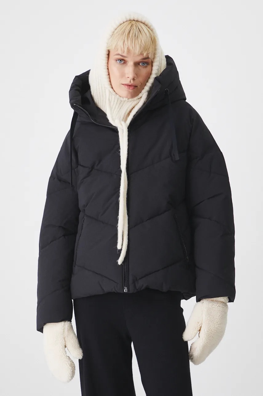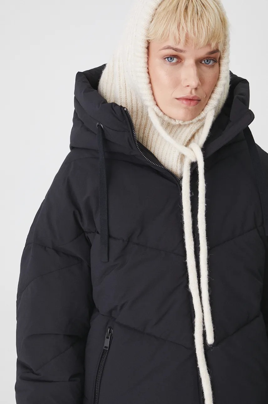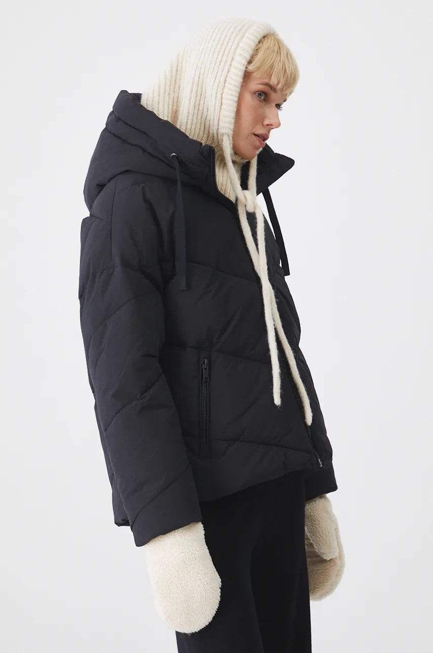 - Fason oversize. - Obniżona linia ramion. - Rękawy wykończone ściągaczem. - Zapięcie na suwak. - Podwyższony kołnierz. - Kaptur ściągany troczkami. - Dwie wsuwane i zapinane na suwak kieszenie boczne. - Ocieplony model na podszewce. - Pikowany model. - Długość rękawa(mierzona od kaptura): 75,5 cm. - Długość: 68 cm. - Szerokość w biuście: 59 cm. - Wymiary podane dla rozmiaru: S.