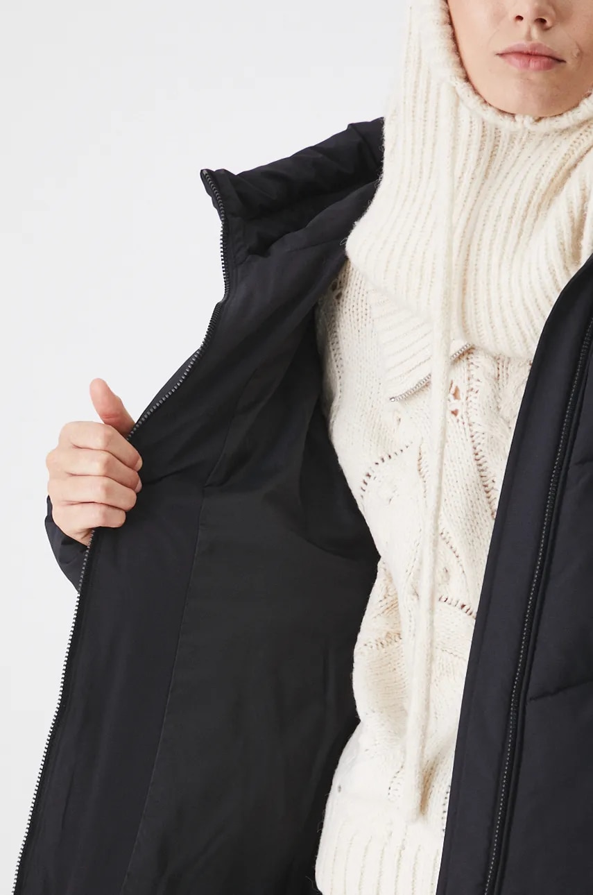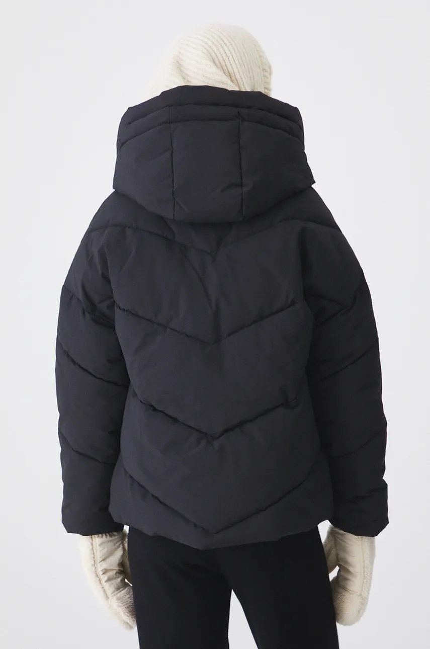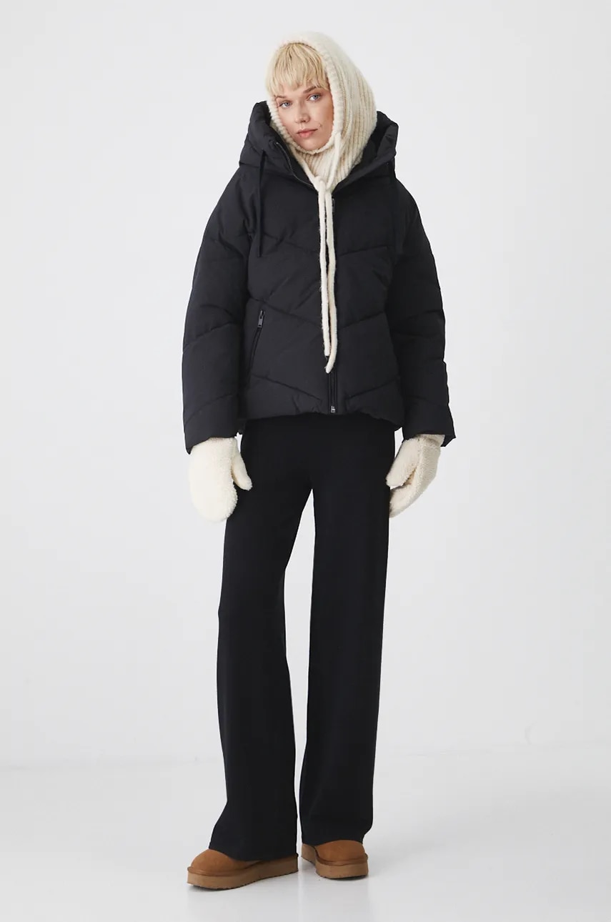 - Fason oversize. - Obniżona linia ramion. - Rękawy wykończone ściągaczem. - Zapięcie na suwak. - Podwyższony kołnierz. - Kaptur ściągany troczkami. - Dwie wsuwane i zapinane na suwak kieszenie boczne. - Ocieplony model na podszewce. - Pikowany model. - Długość rękawa(mierzona od kaptura): 75,5 cm. - Długość: 68 cm. - Szerokość w biuście: 59 cm. - Wymiary podane dla rozmiaru: S.