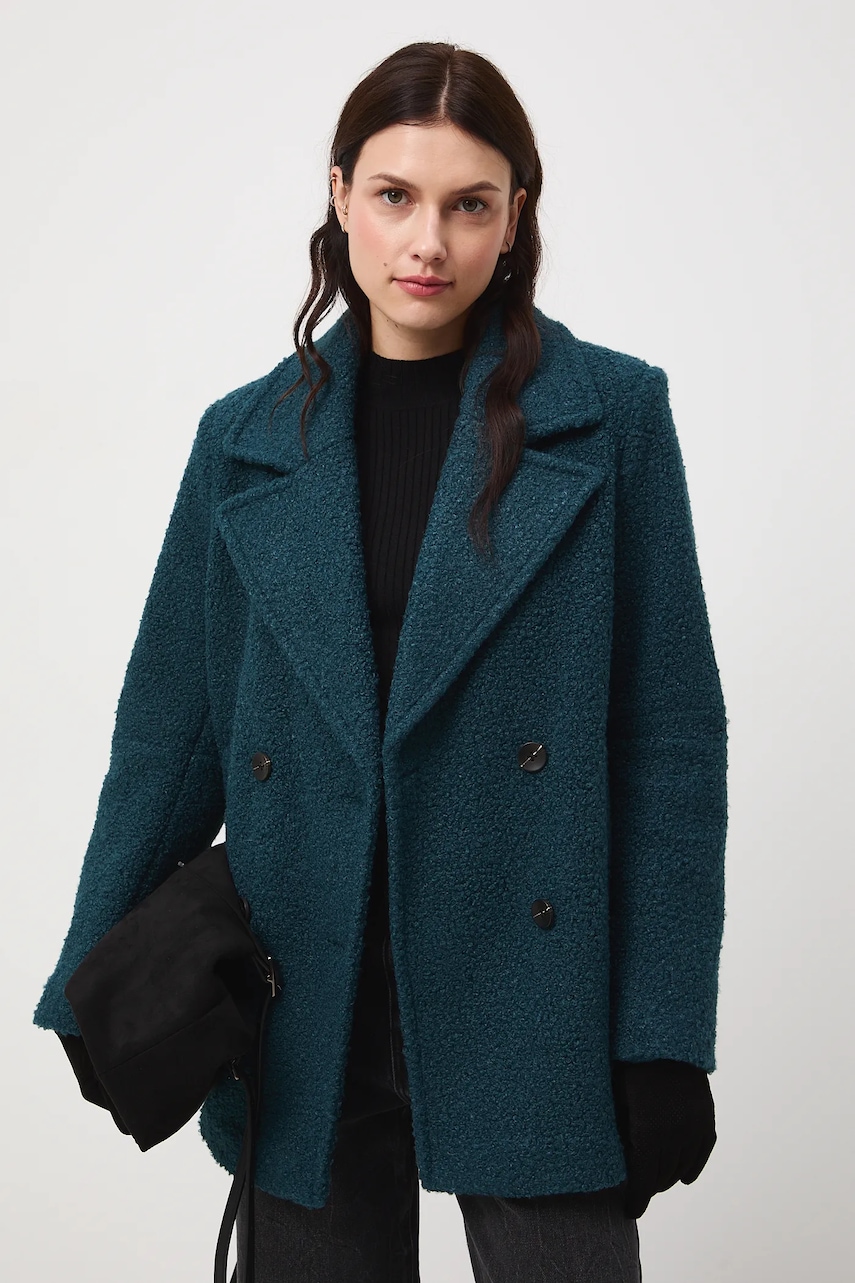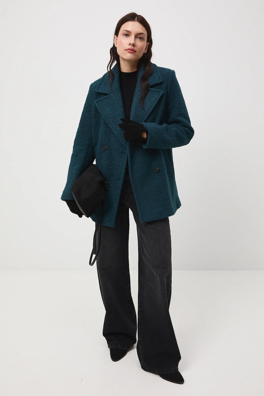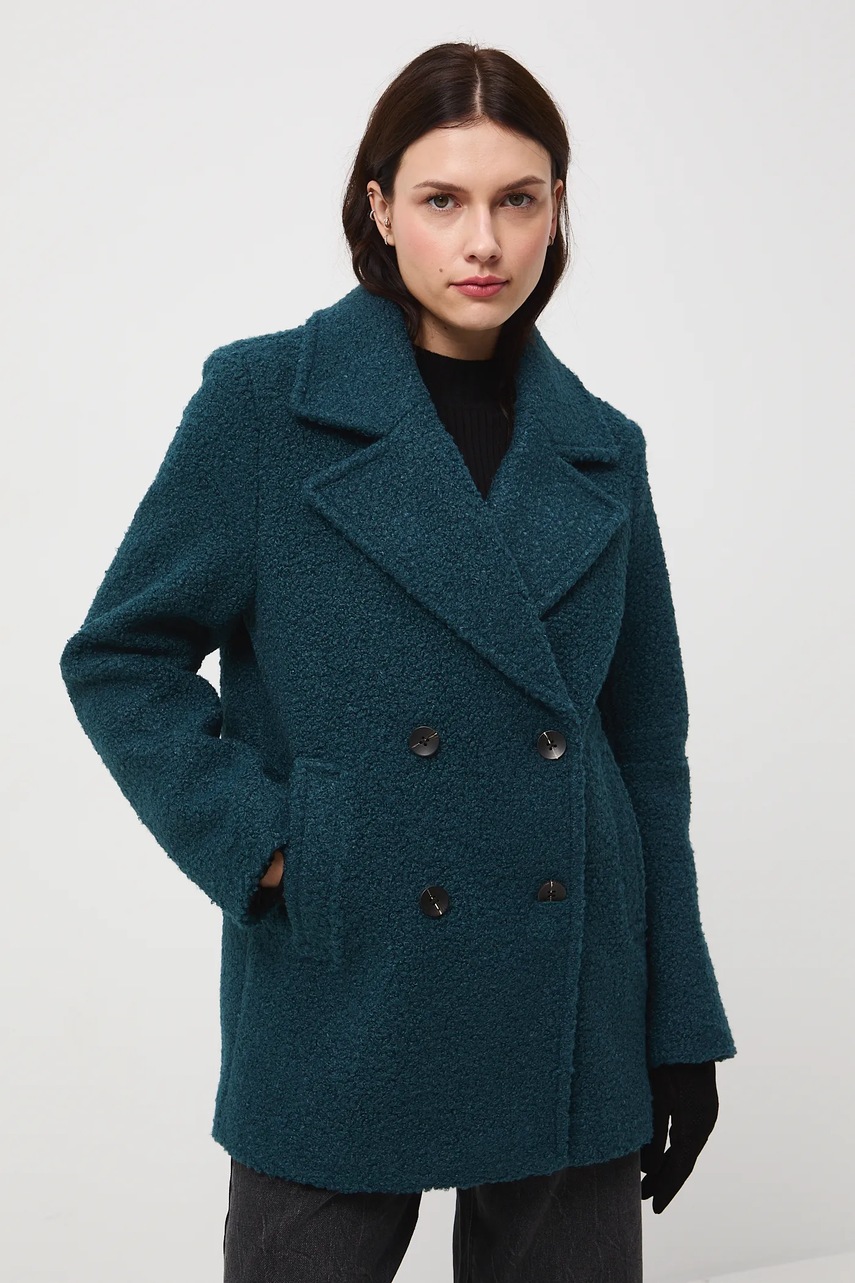 - Fason regular. - Dwurzędowe zapięcie na guziki. - Klasyczne klapy. - Wsuwane kieszenie zewnętrzne. - Materiał z fakturą. - Nieocieplony model na podszewce. - Długość rękawa: 64 cm. - Długość: 77 cm. - Szerokość w biuście: 53 cm. - Szerokość w ramionach: 43 cm. - Wymiary podane dla rozmiaru: S.