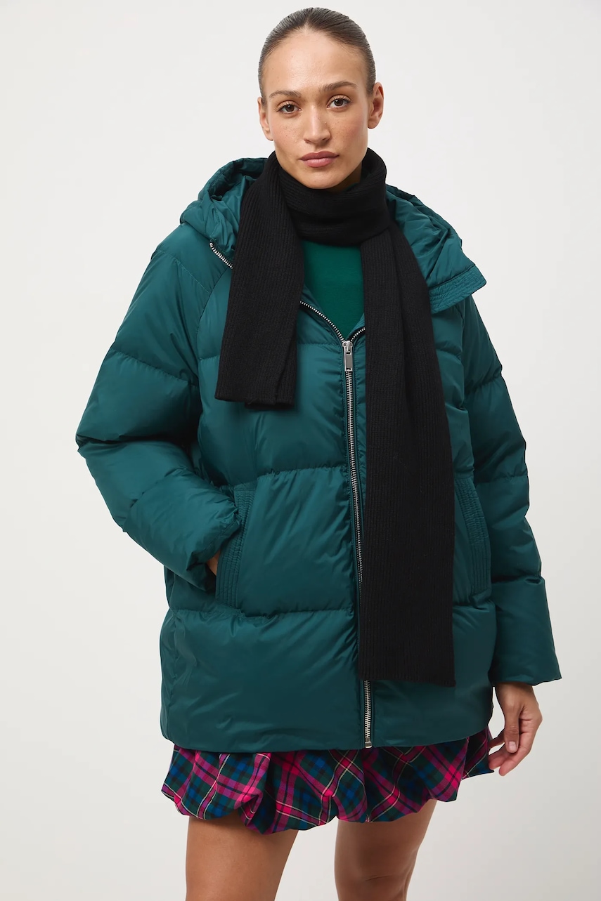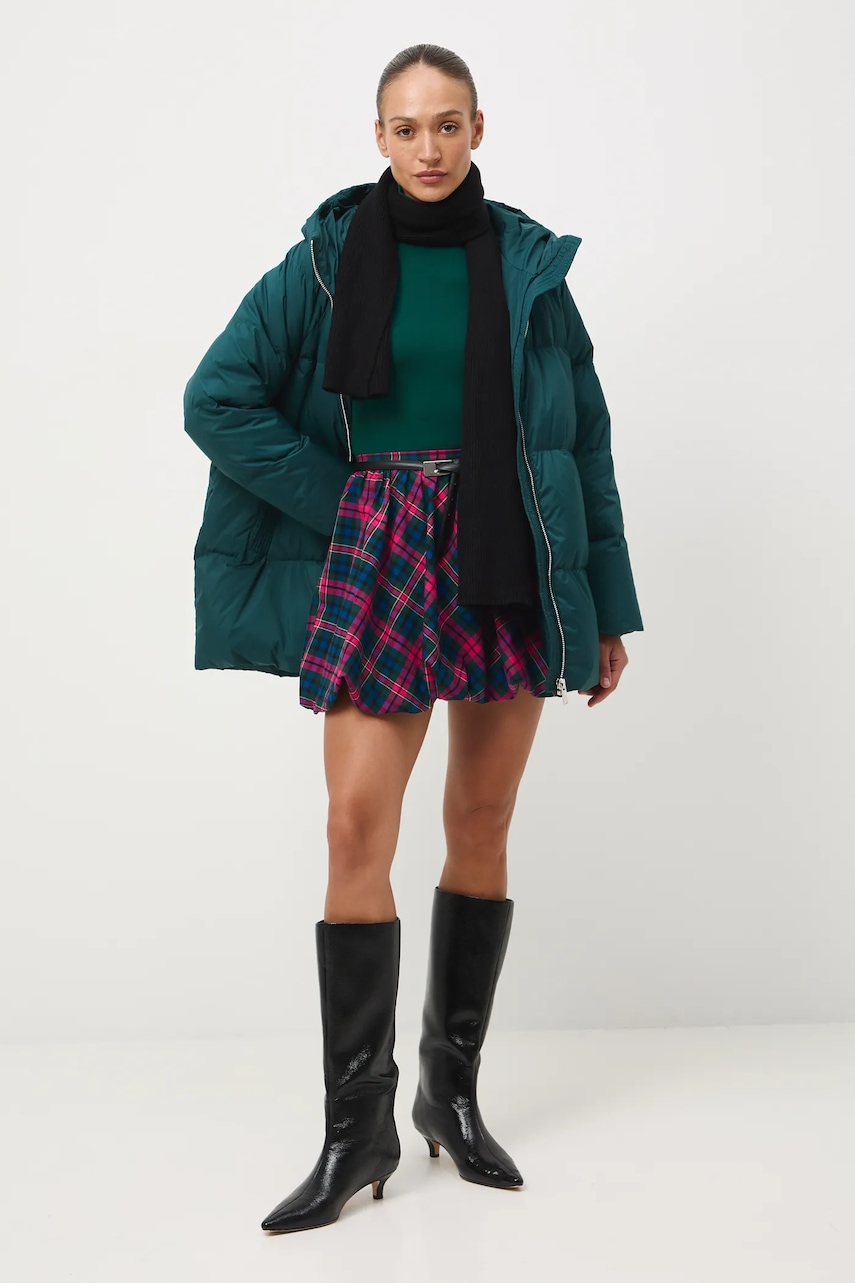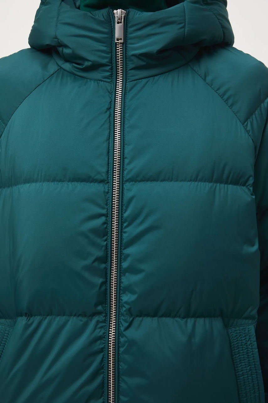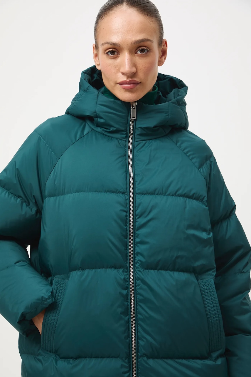 - Fason oversize. - Zapięcie na suwak. - Podwyższony kołnierz. - Model z kapturem. - Dwie wsuwane kieszenie boczne. - Ocieplony model na podszewce. - Pikowany model. - Wypełnienie z naturalnego puchu i pierza. - Długość rękawa(mierzona od kaptura): 75 cm. - Długość: 78 cm. - Szerokość w biuście: 68 cm. - Wymiary podane dla rozmiaru: S.