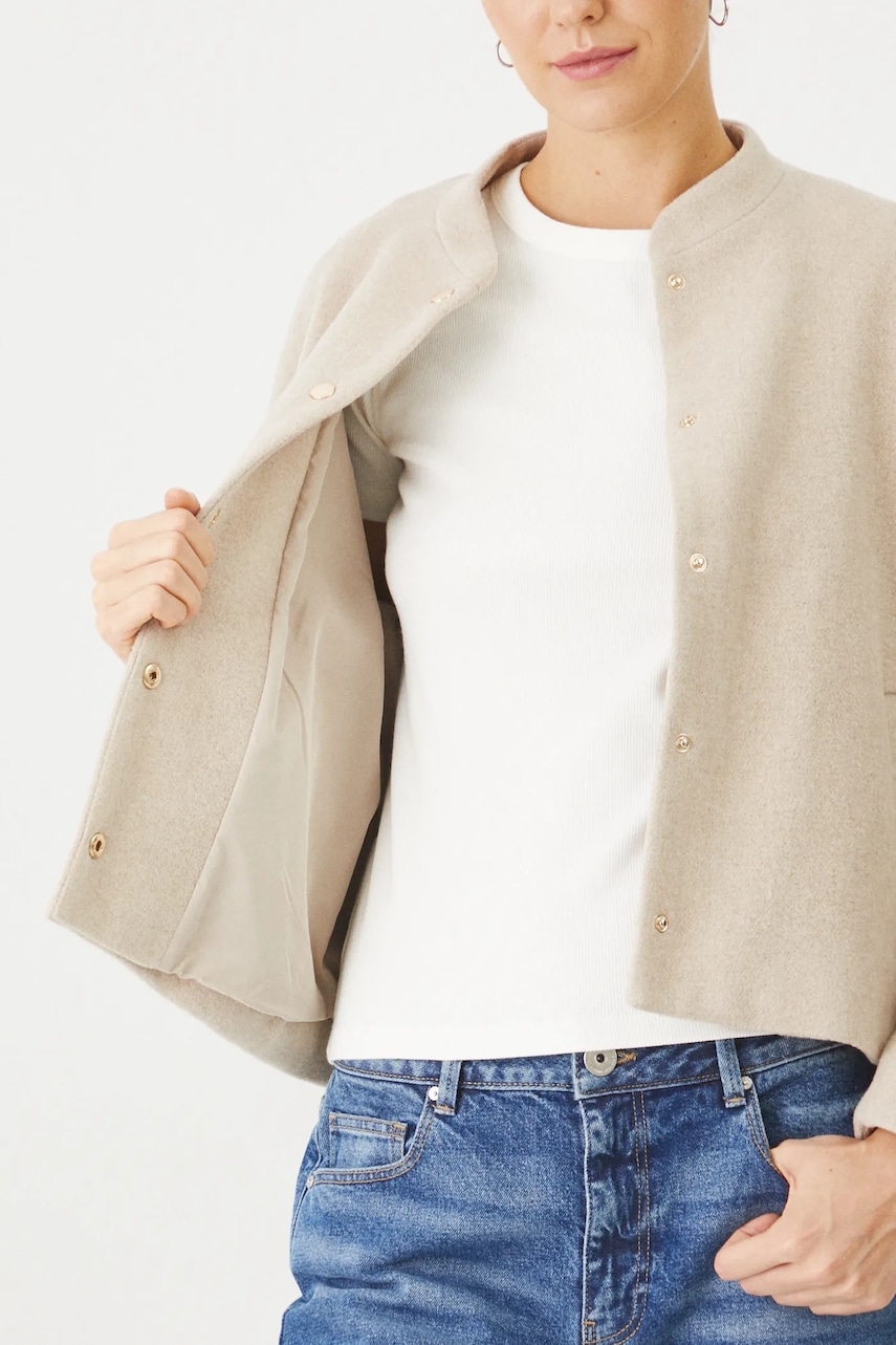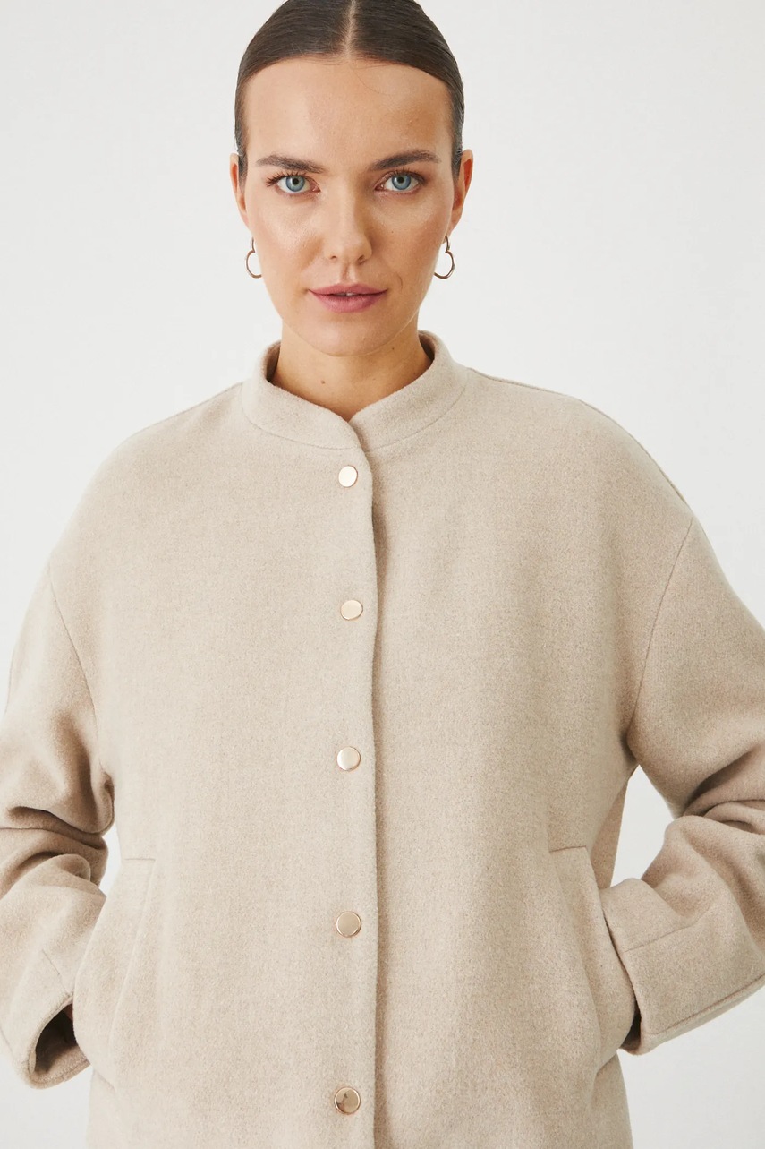 Medicine kurtka z domieszką wełny damska kolor beżowy przejściowa oversize