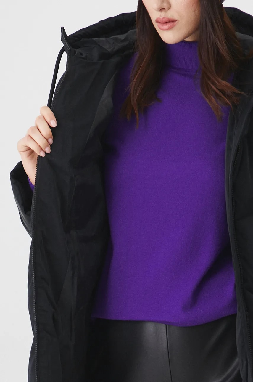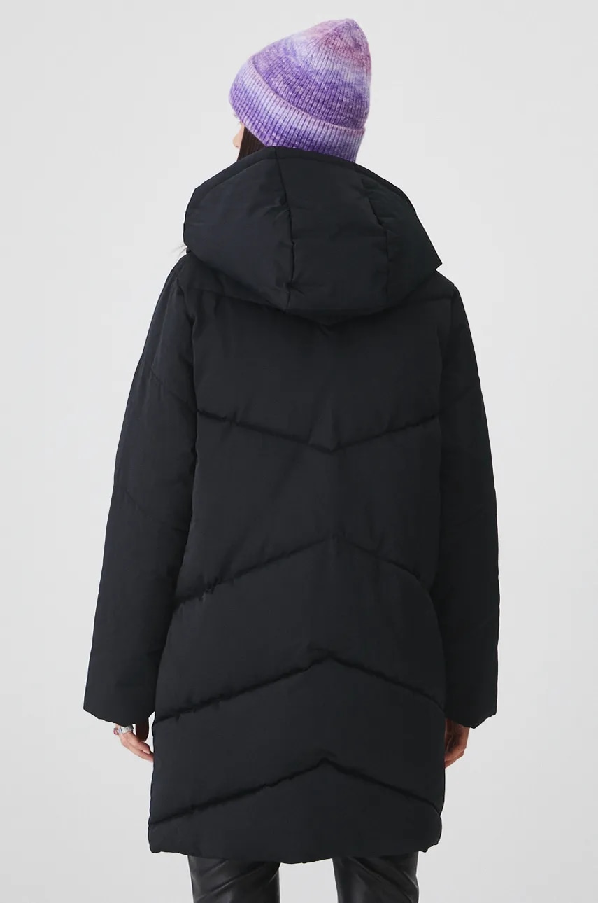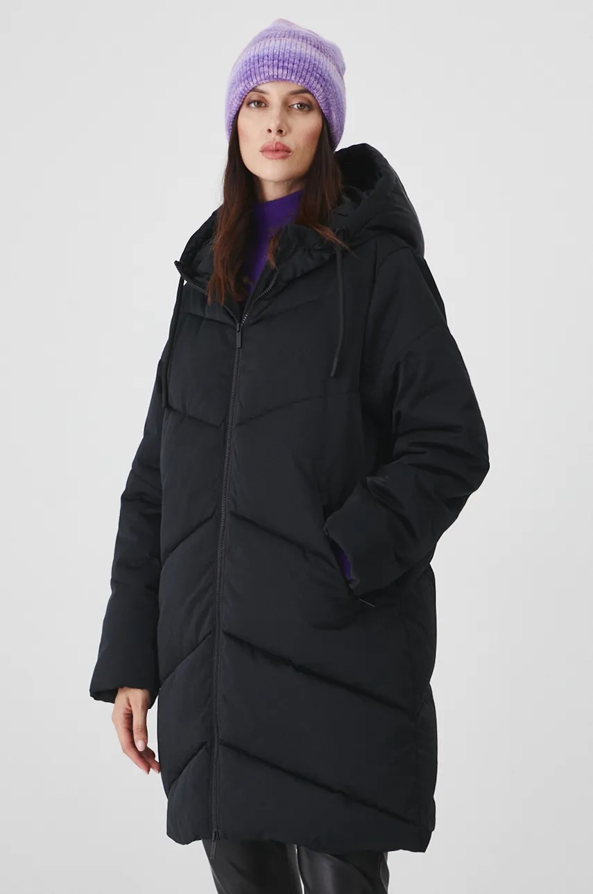 - Fason regular. - Długi rękaw. - Zapięcie na dwustronny suwak. - Podwyższony kołnierz. - Kaptur ściągany troczkami. - Dwie wsuwane i zapinane na suwak kieszenie boczne. - Ocieplony model na podszewce. - Pikowany model. - Długość rękawa: 63 cm. - Długość z przodu: 90 cm. - Długość z tyłu: 91,5 cm. - Szerokość pod pachami: 59 cm. - Szerokość w ramionach: 43,5 cm. - Wymiary podane dla rozmiaru: S.