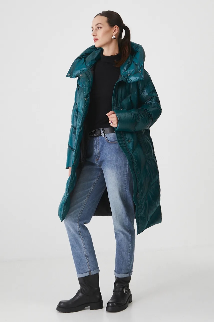 Medicine płaszcz puchowy damski kolor zielony zimowy